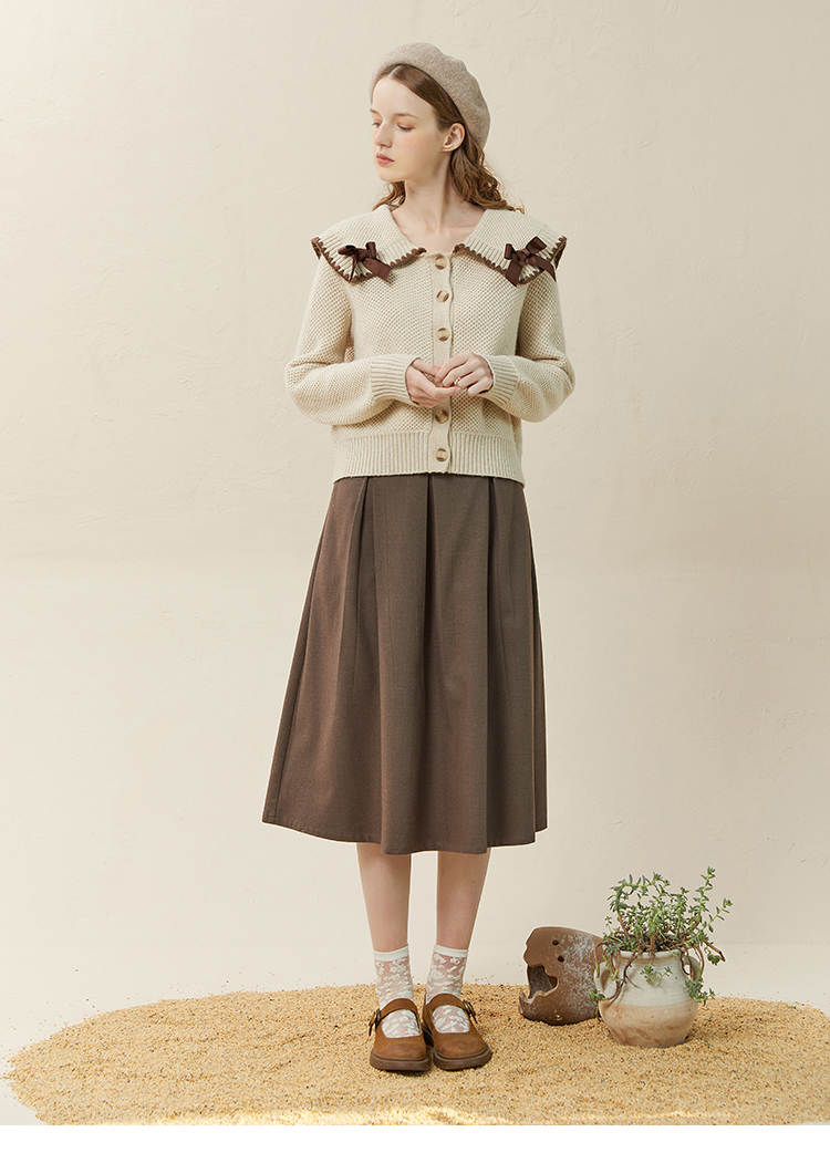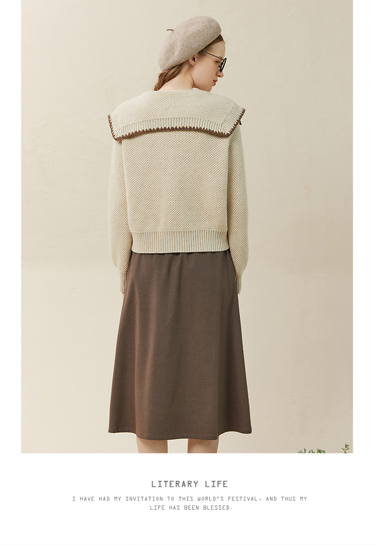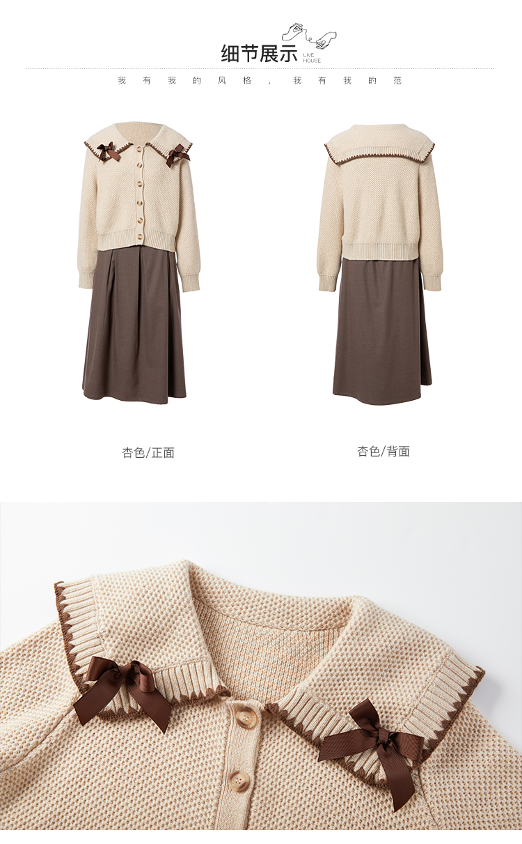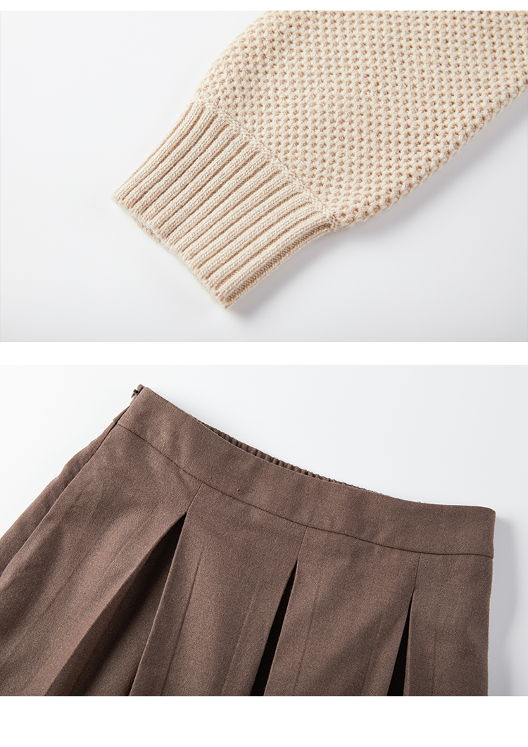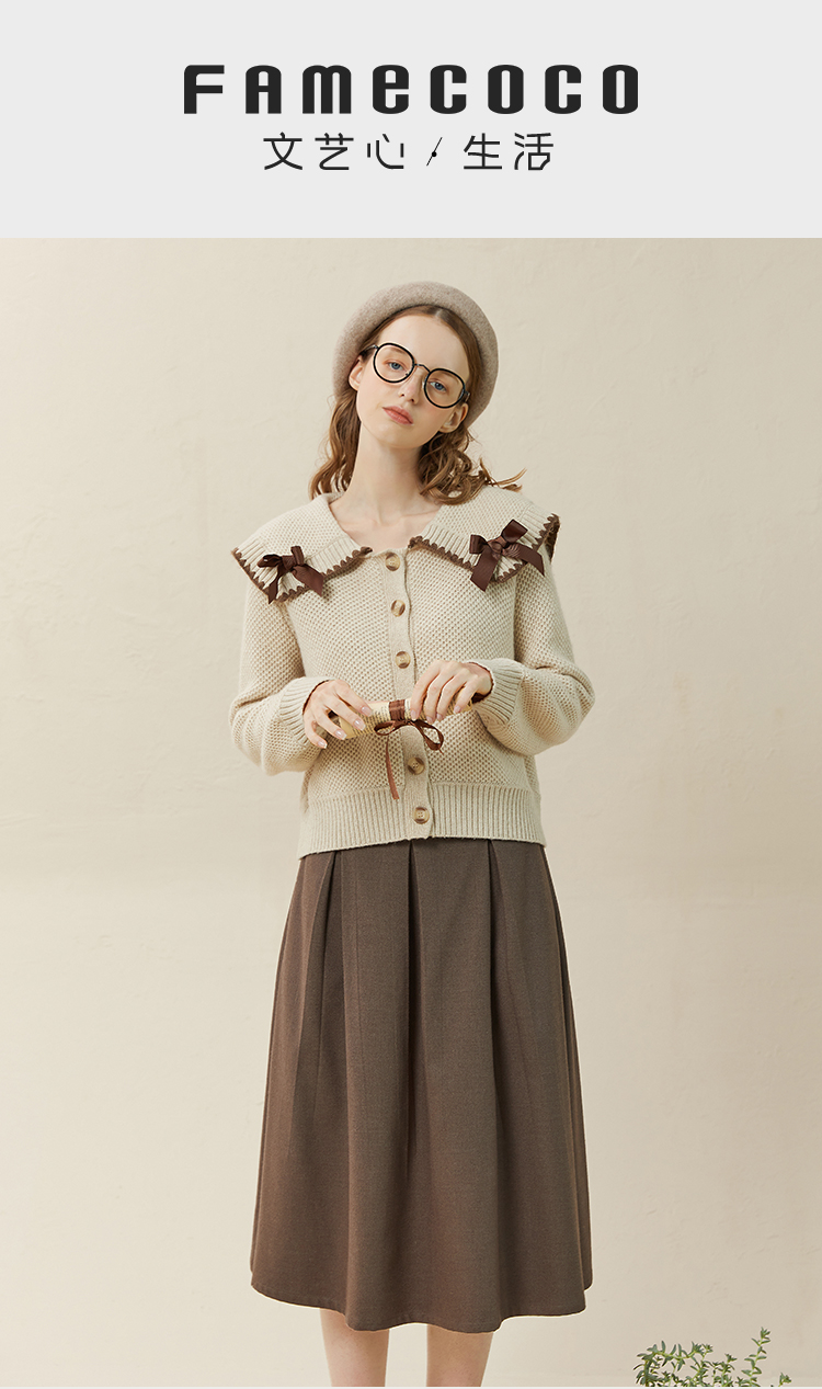 Famecoco范可儿毛衣配半裙套装秋冬娃娃领套装裙两件套F228EC002