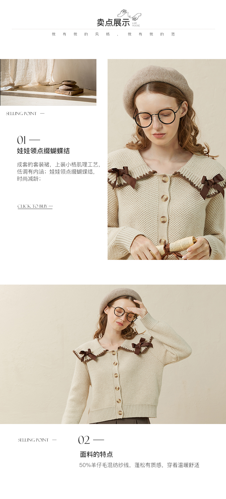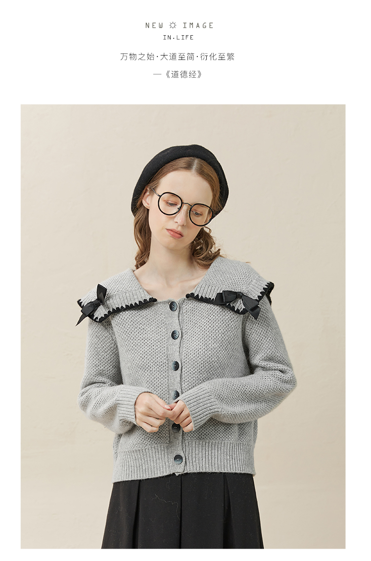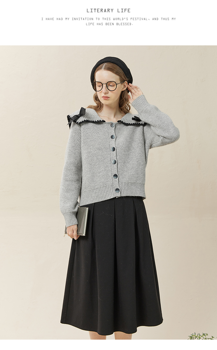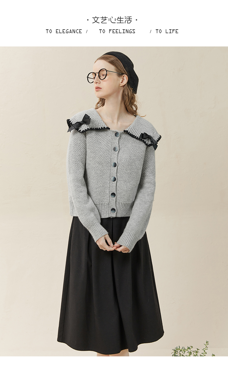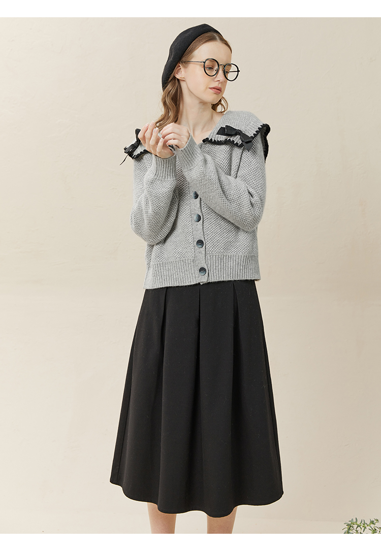 Famecoco范可儿毛衣配半裙套装秋冬娃娃领套装裙两件套F228EC002