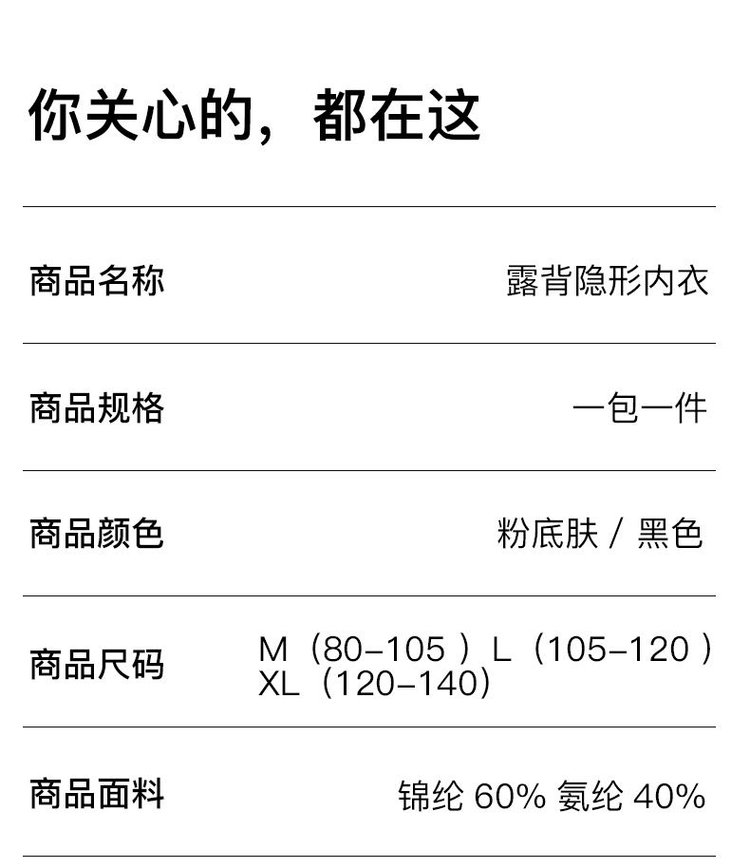 露背隐形内衣尺码表>>