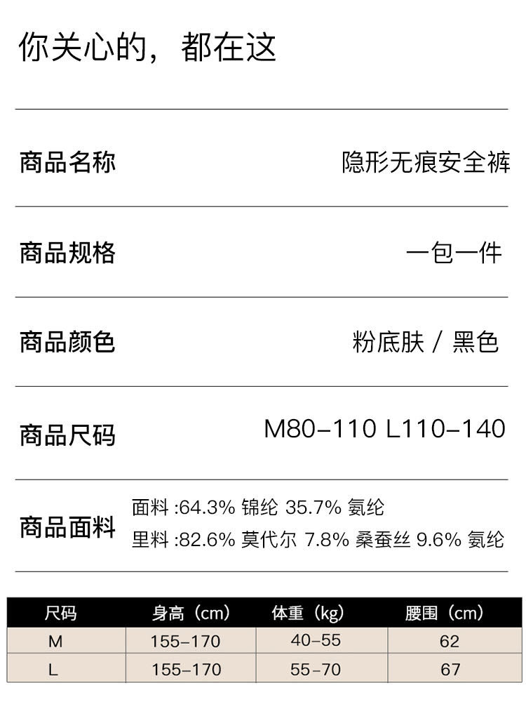 隐形无痕安全裤尺码表>>
