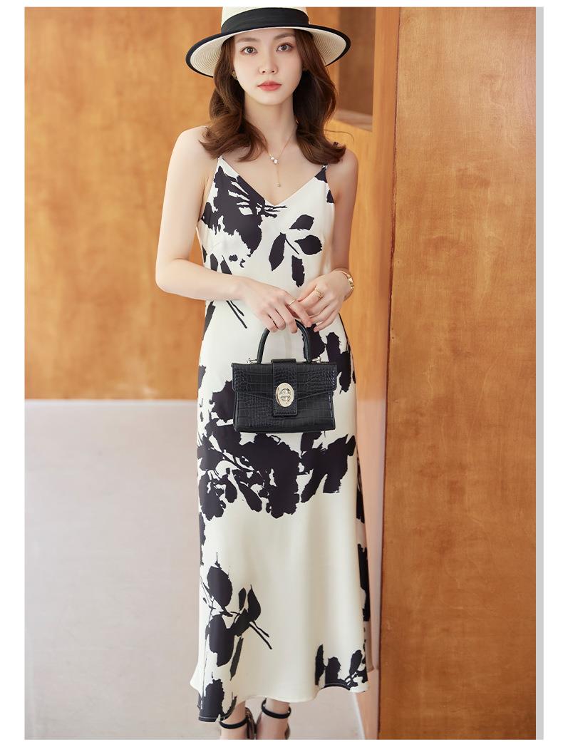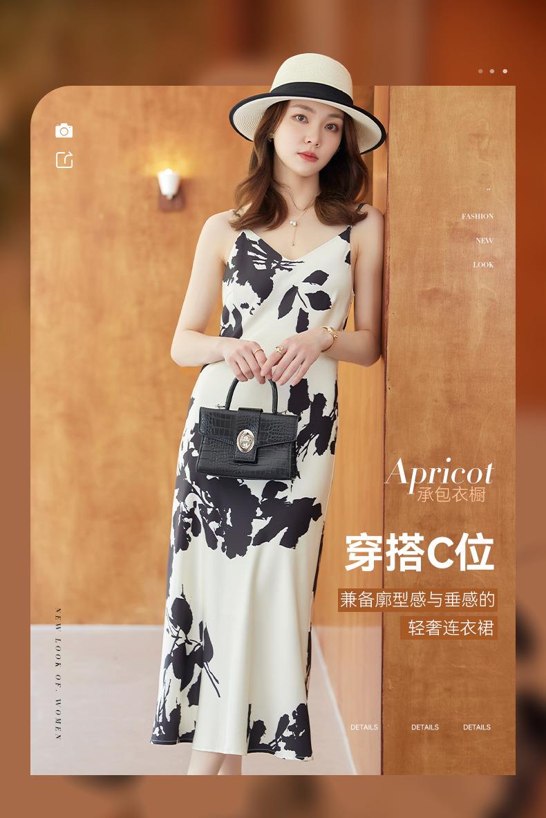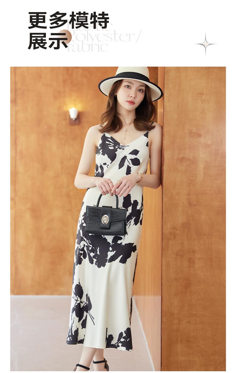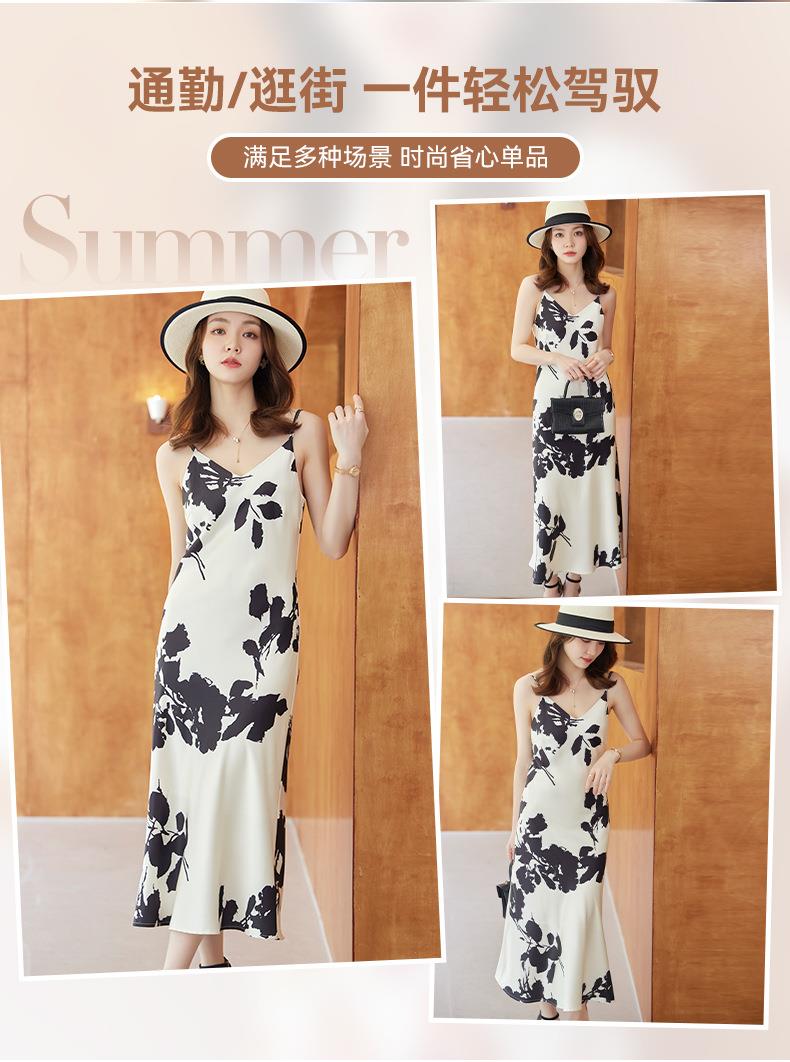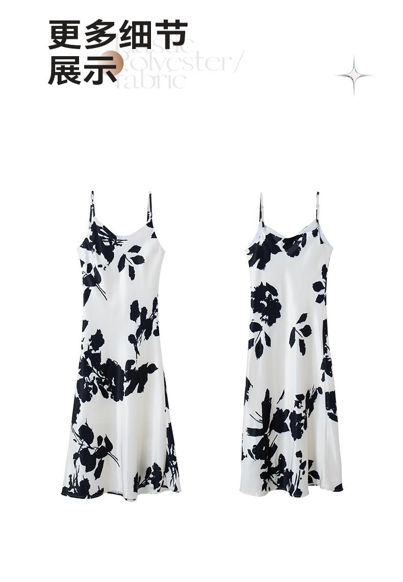 娜璐多 法式茶歇连衣裙高级感国风印花水墨画吊带长裙新中式女装夏款百搭