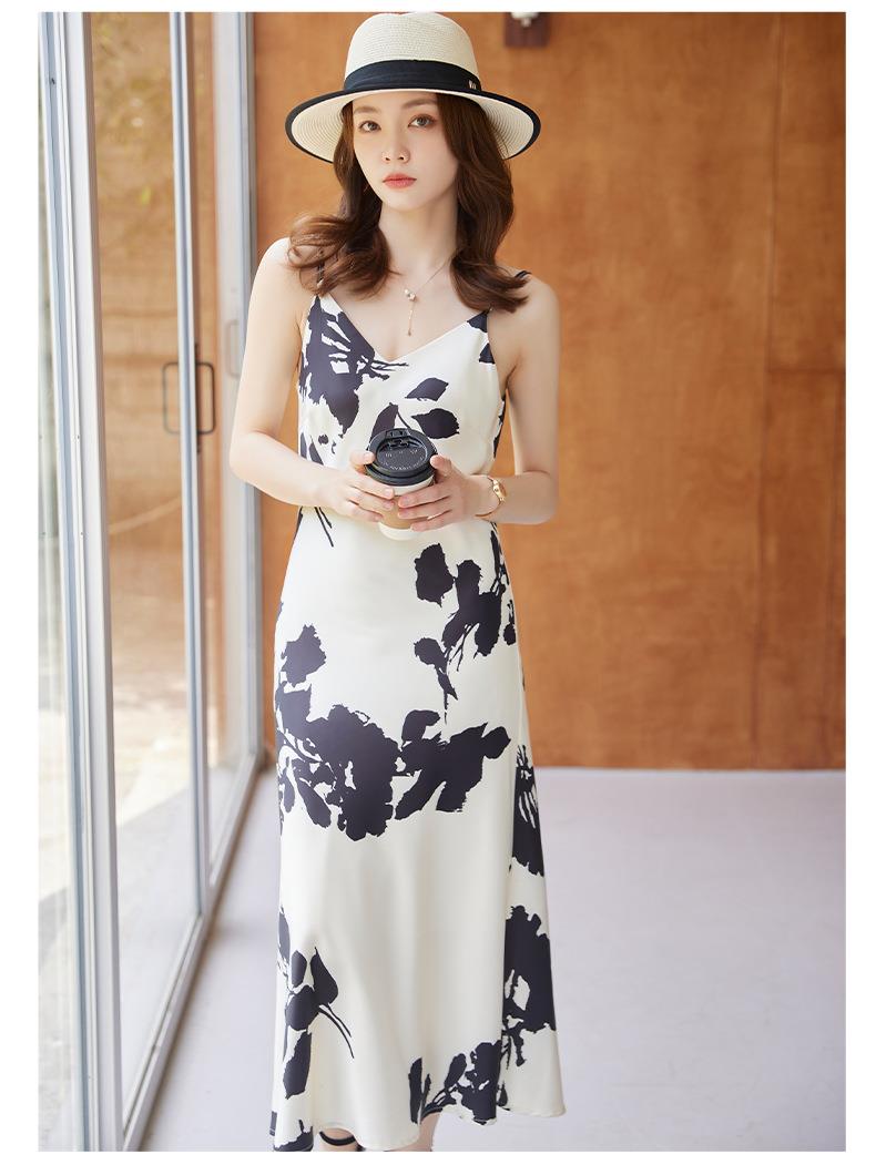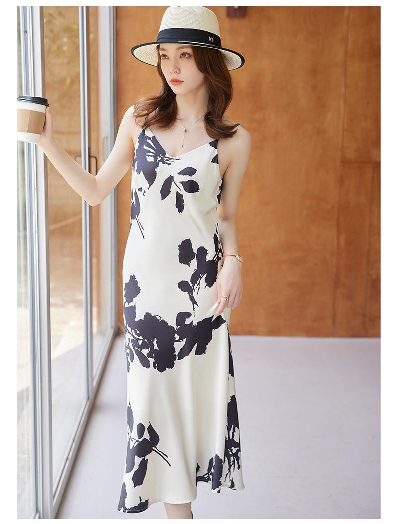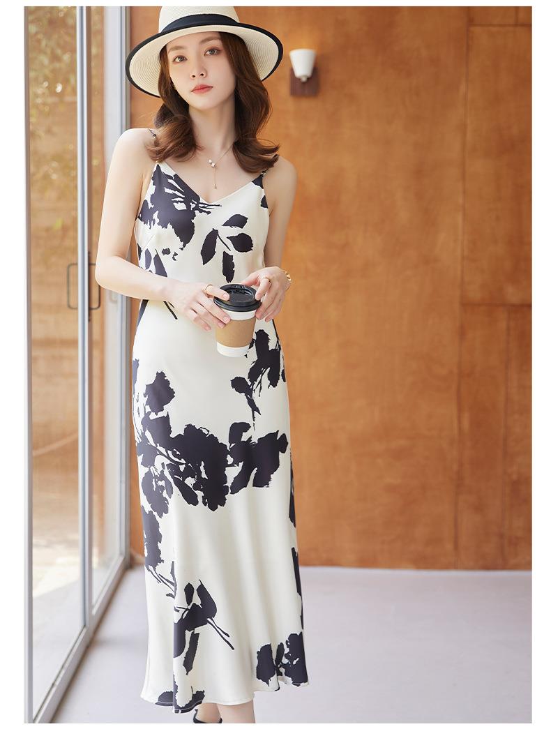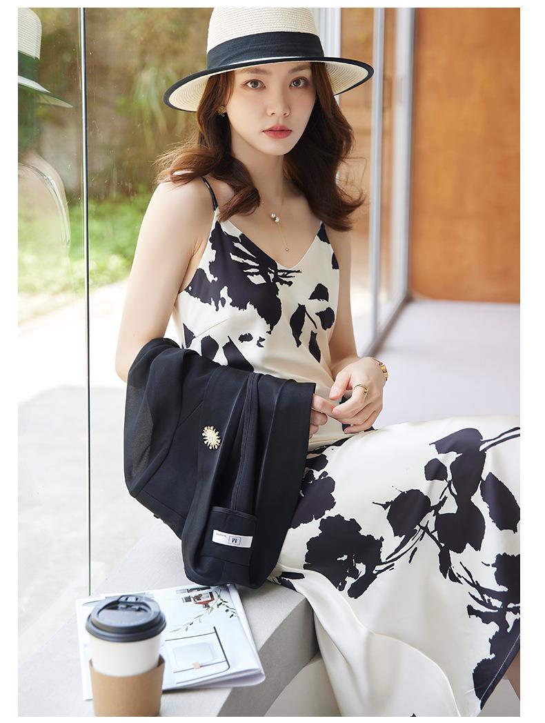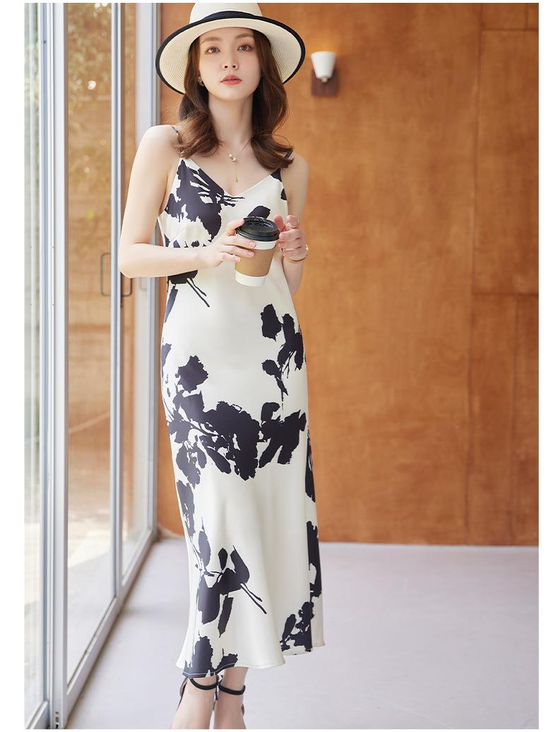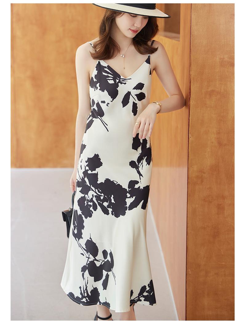 娜璐多 法式茶歇连衣裙高级感国风印花水墨画吊带长裙新中式女装夏款百搭