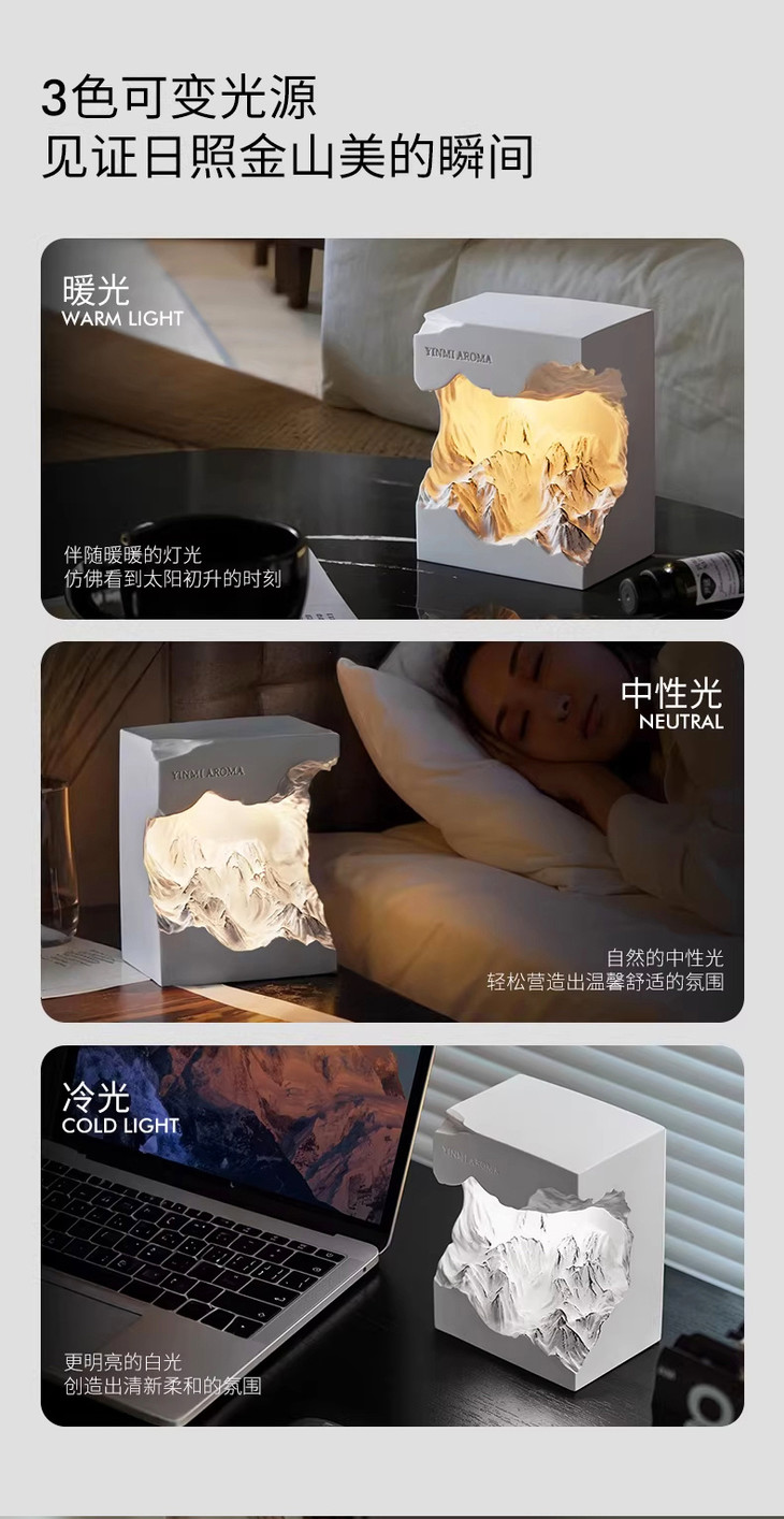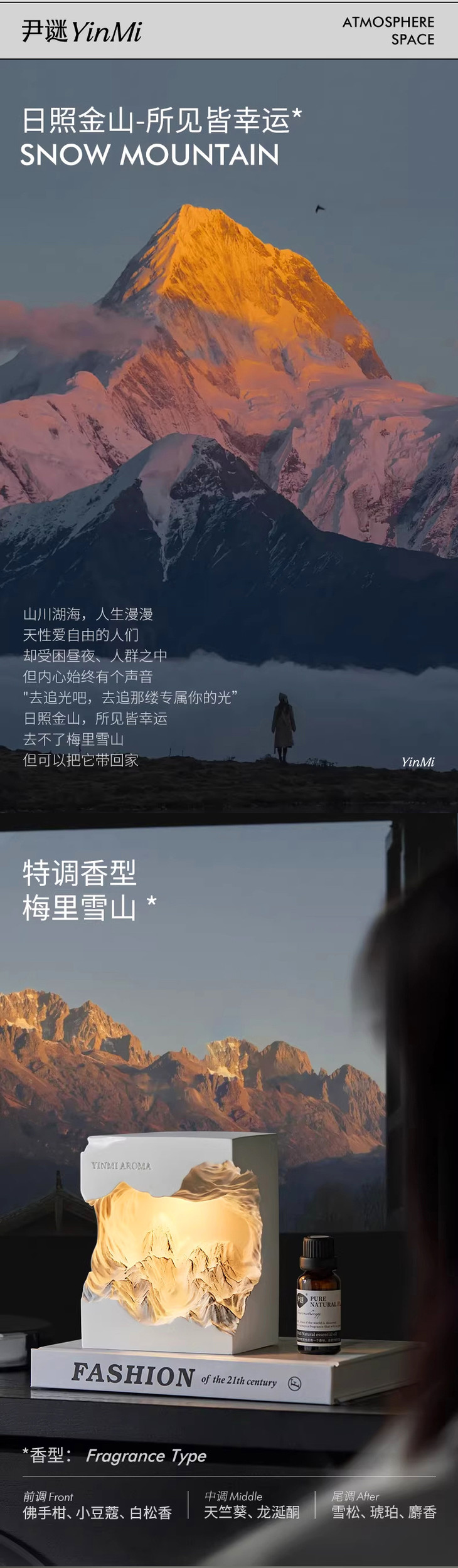 💫香薰+艺术摆件+氛围灯,实用度满满 见日照金山者,好运一整年! 独一份的温暖光影和诗意栖居 家中每一盏亮起的灯 都映着温柔又疗愈的日照金山🏔️