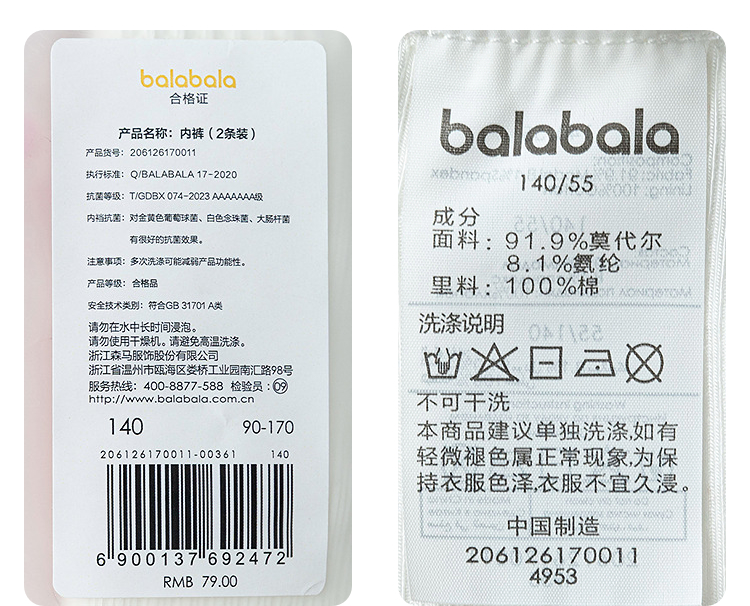 【商场同款】巴拉巴拉女童内裤棉儿童三角短裤不夹PP抗菌裆两条装