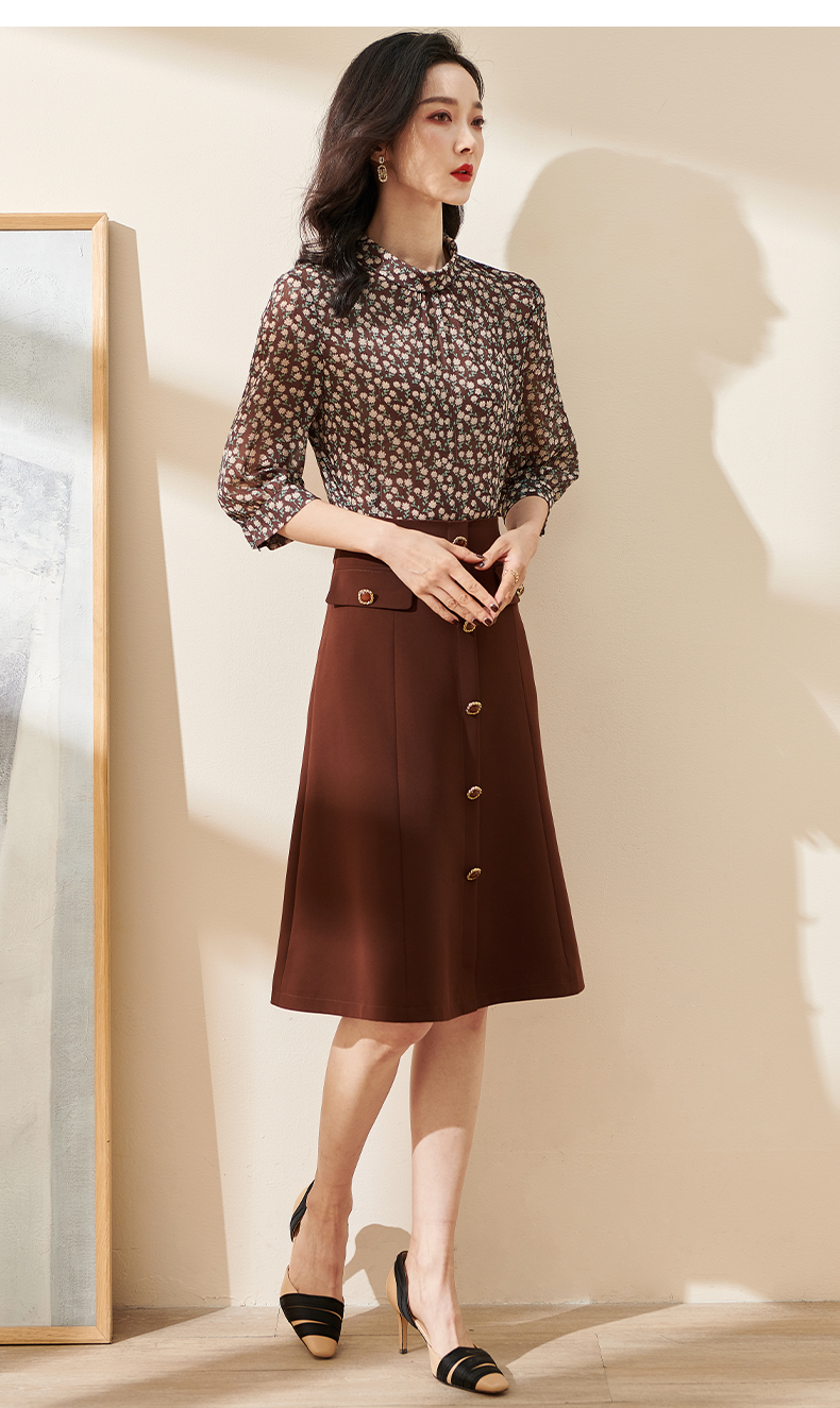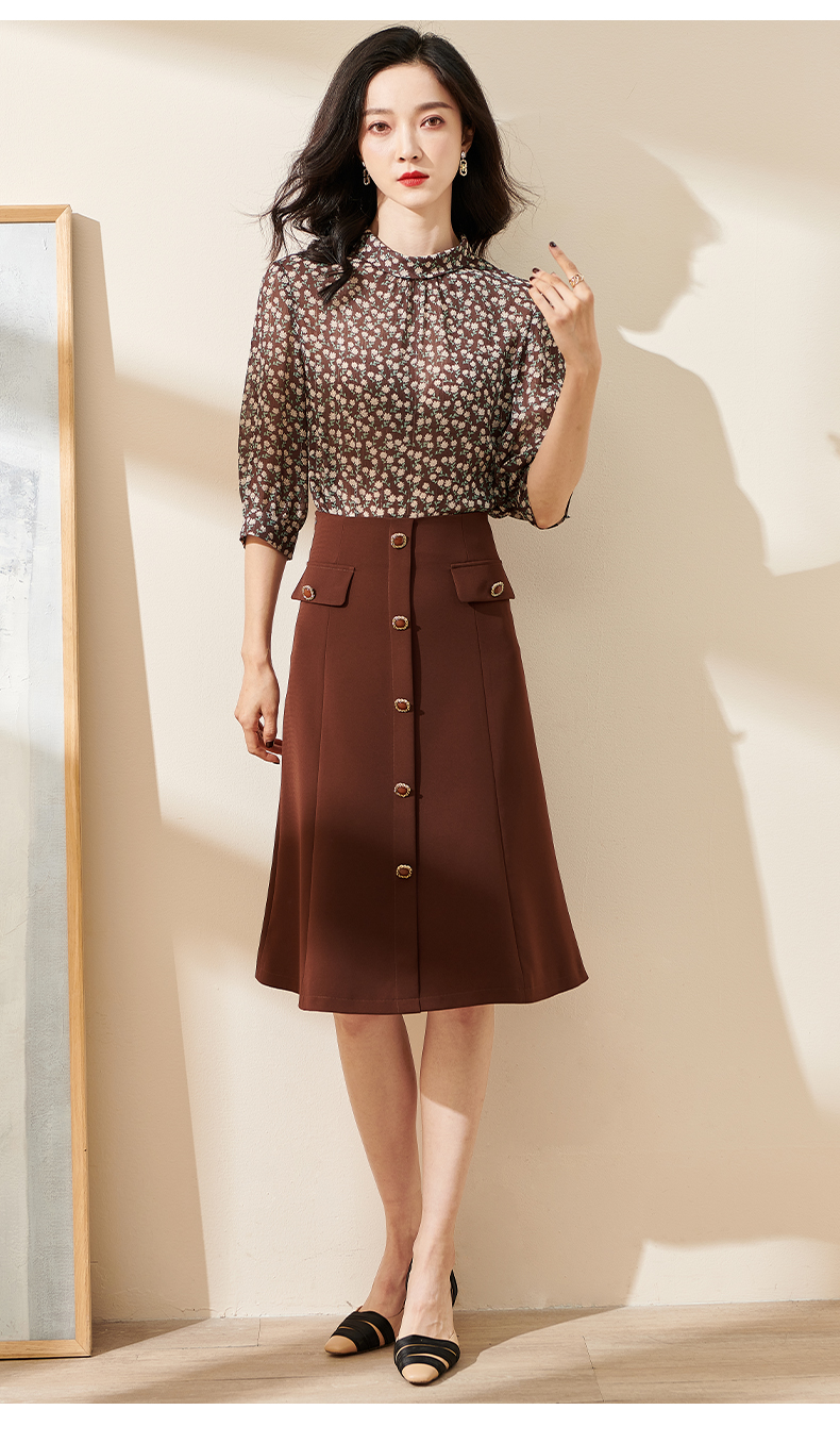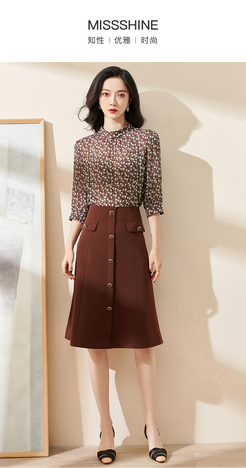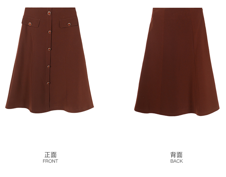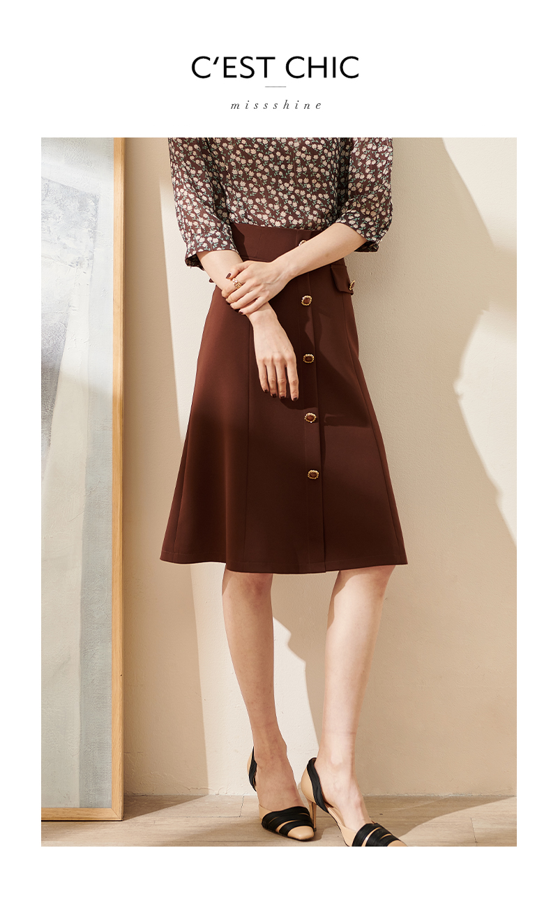 剩S 米思阳2024秋季新款通勤休闲深咖色半身裙扣子点缀a字直筒裙0787