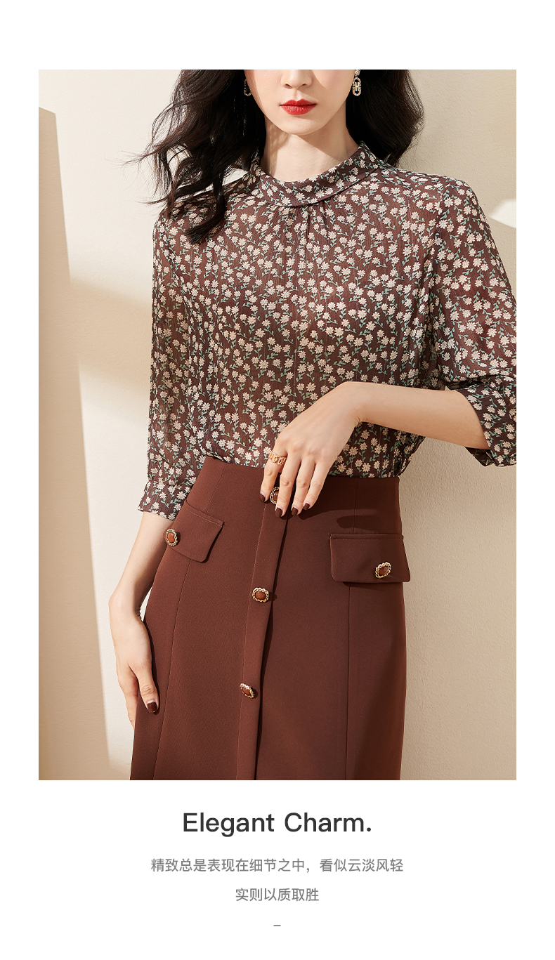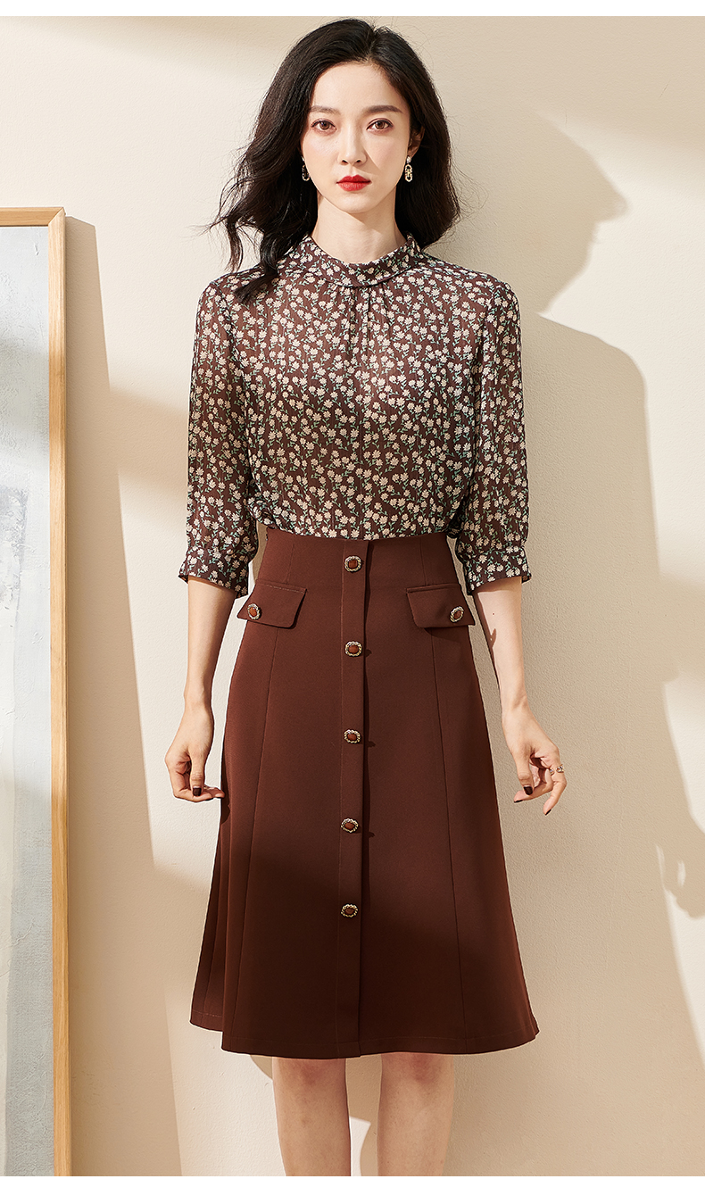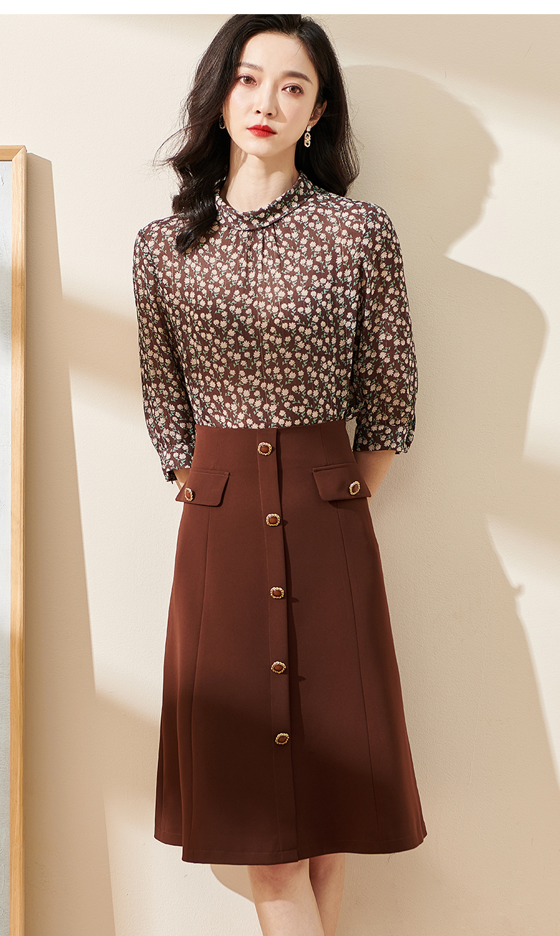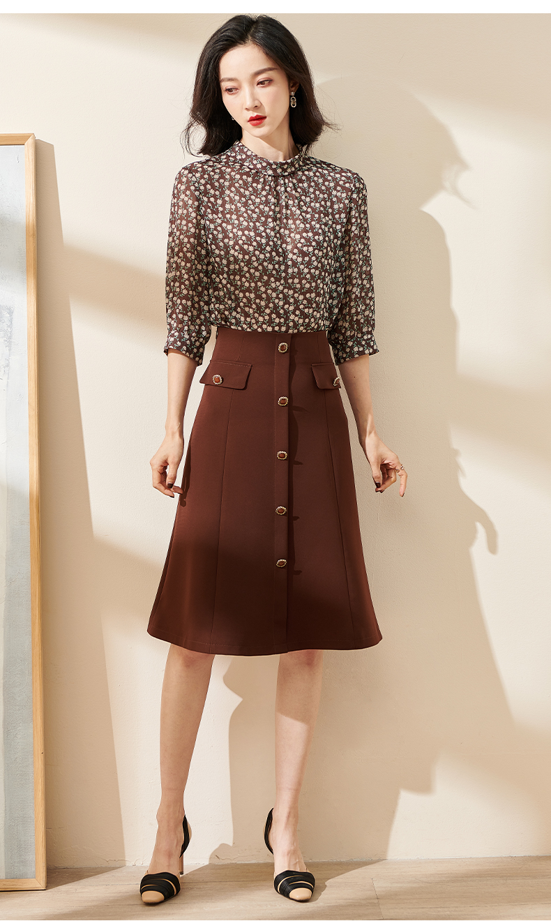 剩S 米思阳2024秋季新款通勤休闲深咖色半身裙扣子点缀a字直筒裙0787