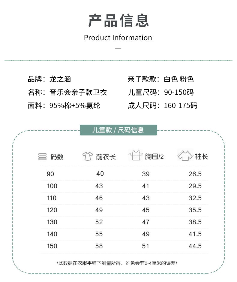 【早春特价】龙之涵 亲子款音乐会卫衣 2021年秋冬新款套头上衣 婴幼儿A类标准 精美印花