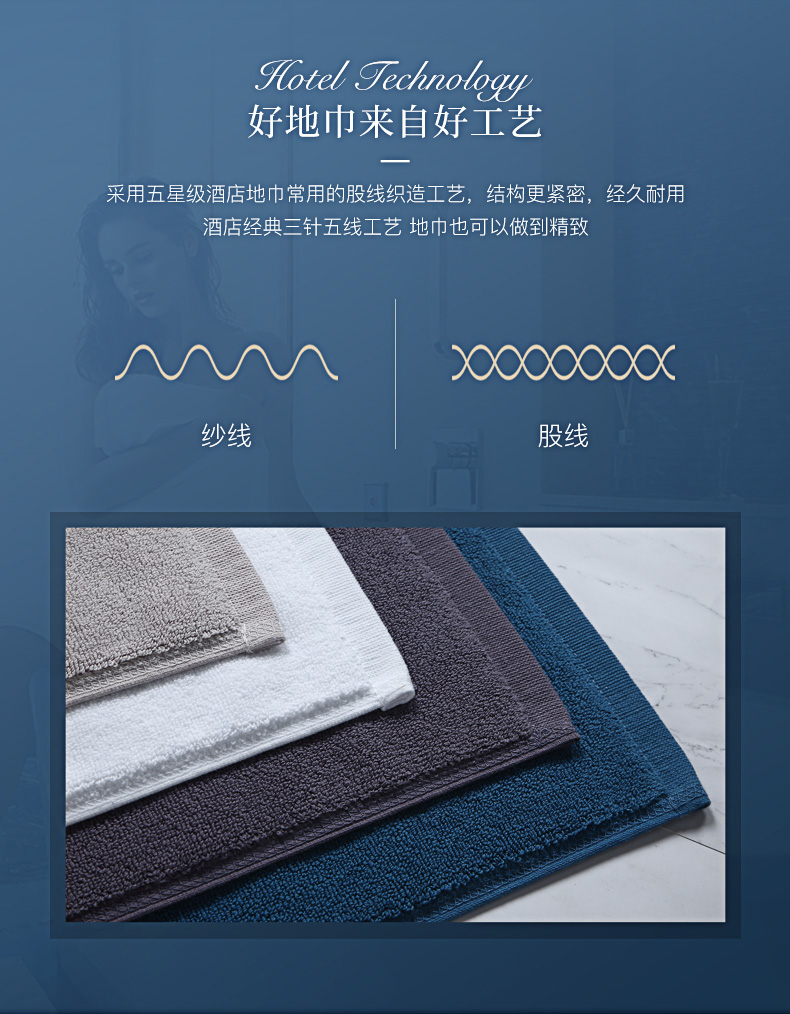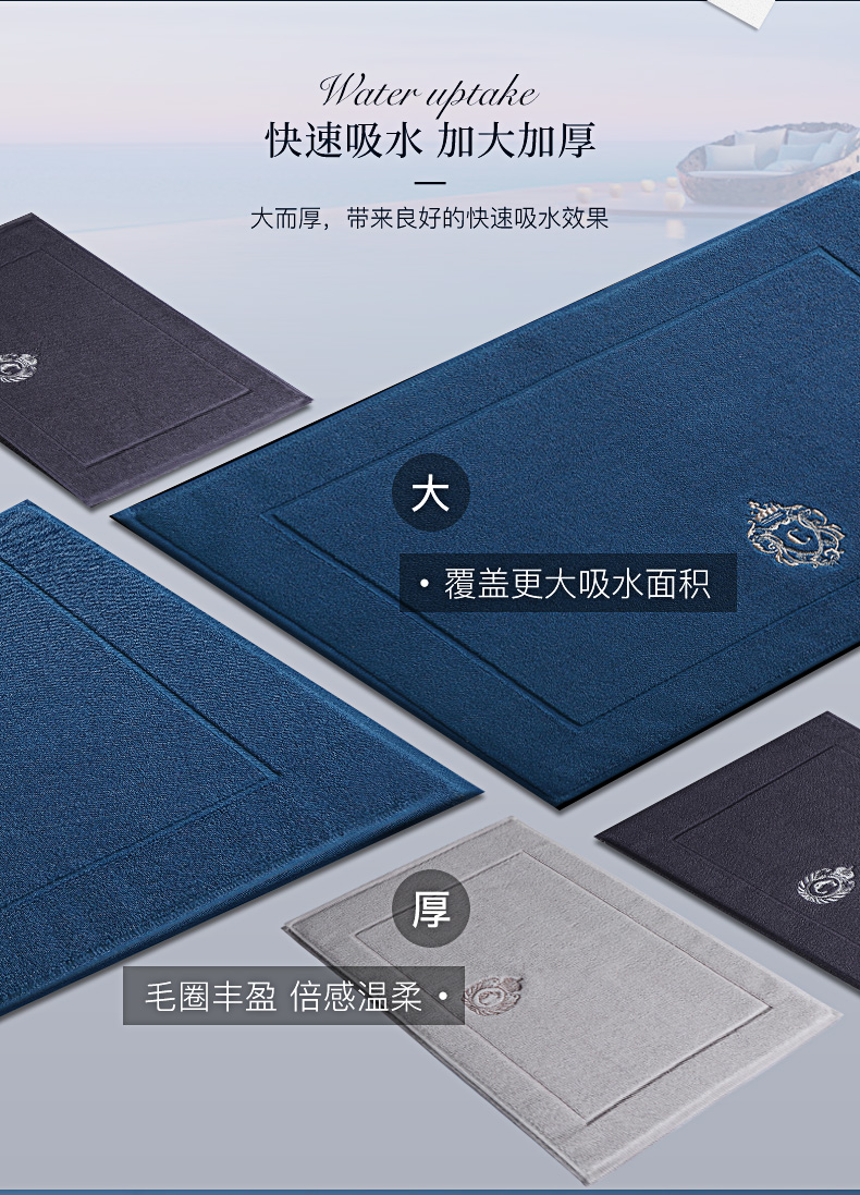 五星级酒店浴室地巾白色卫生间门口全棉吸水地垫进门家用