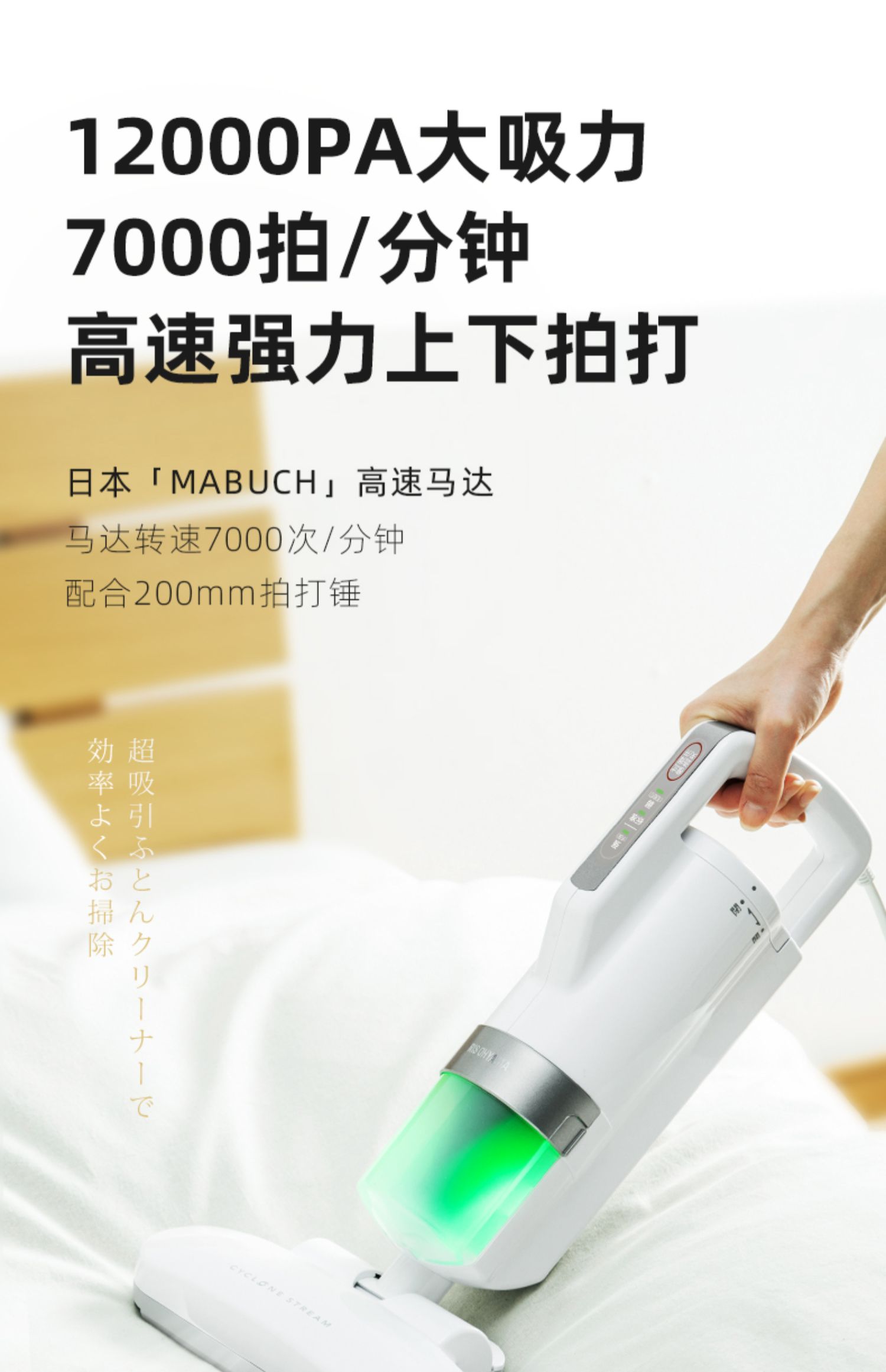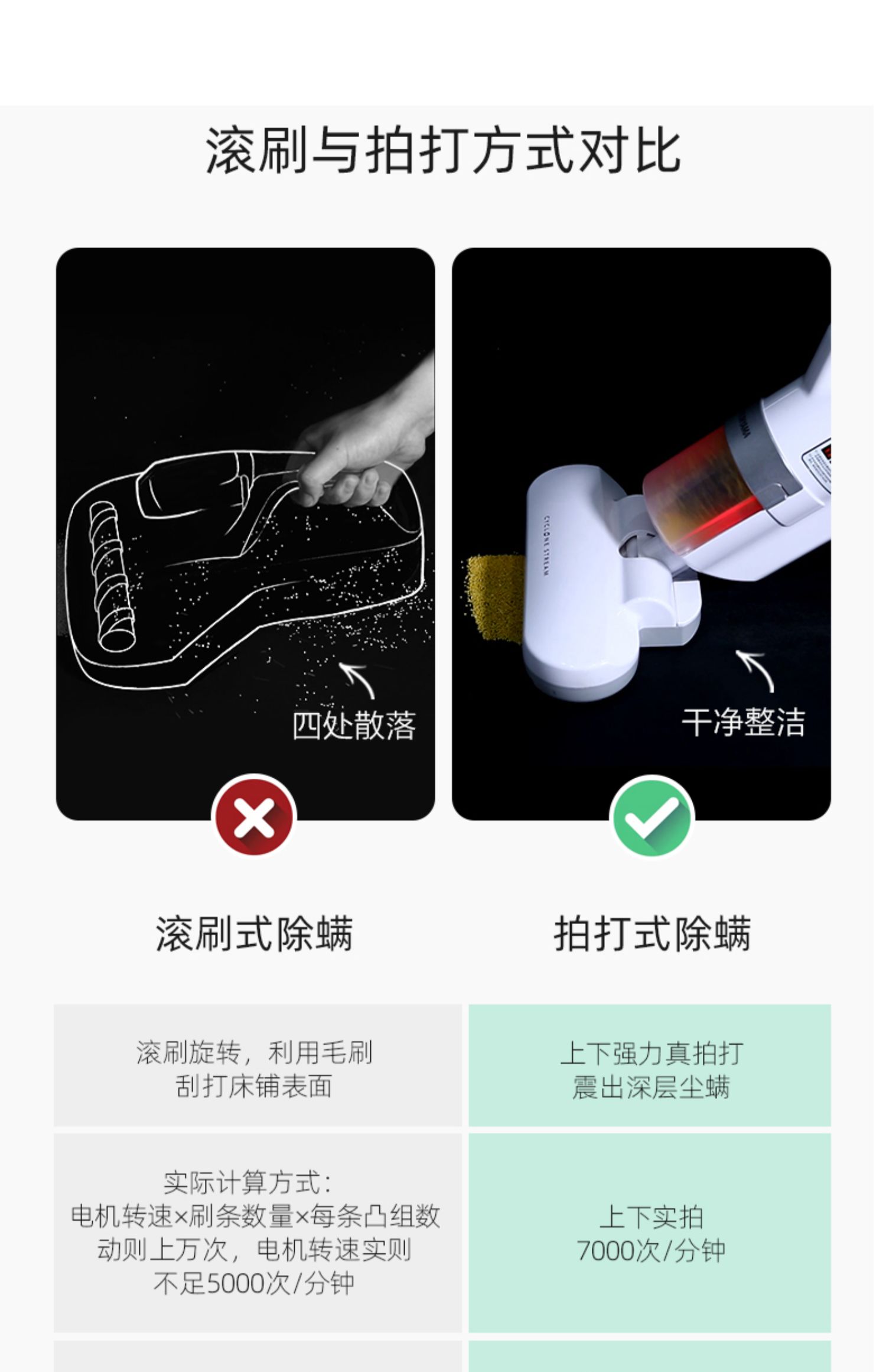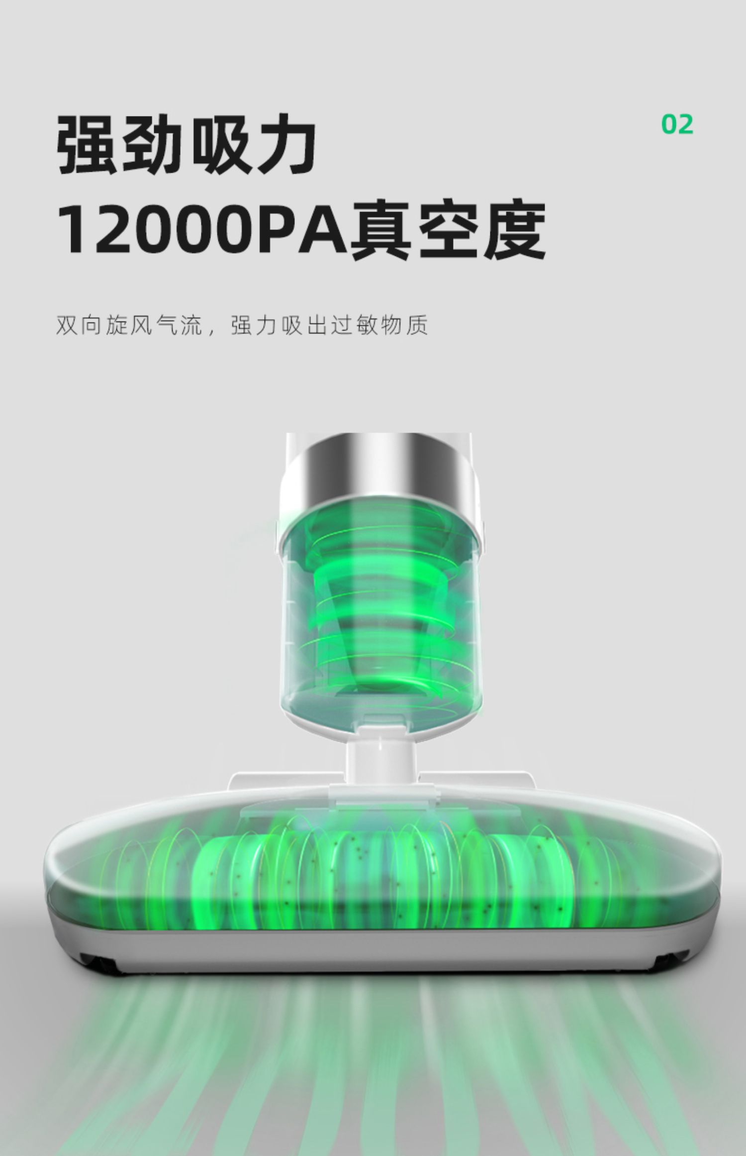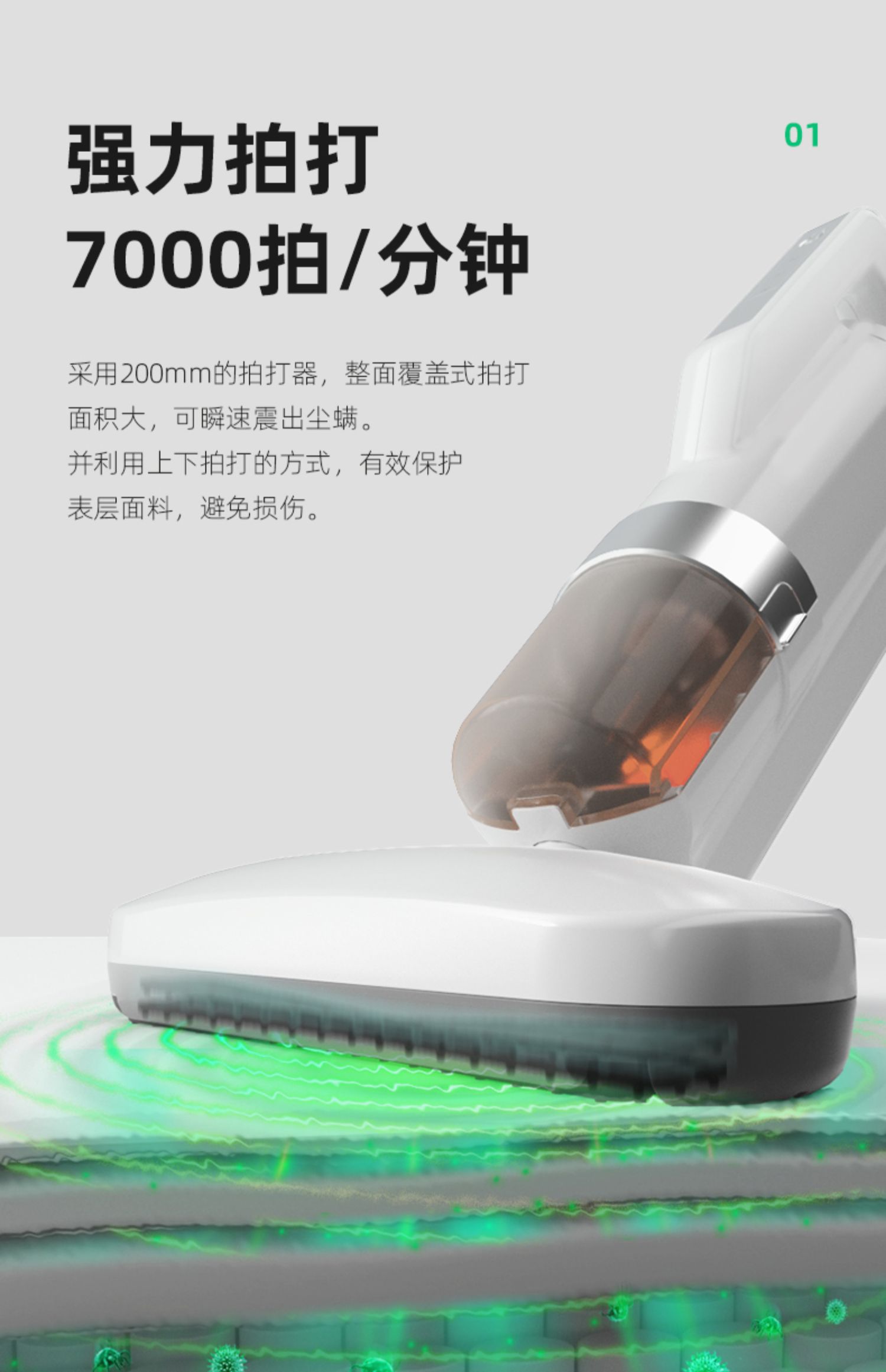 2、升级7000次/分钟高速拍打,强劲吸力,双向旋风气流吸出过敏物