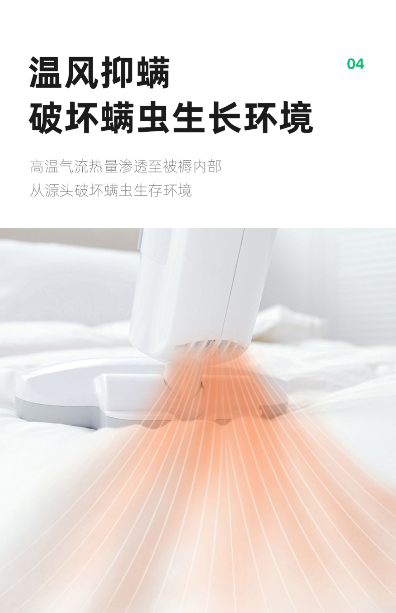 3、温风加热除螨抑制螨虫繁殖,可水洗集尘杯,清洁方便,循环使用