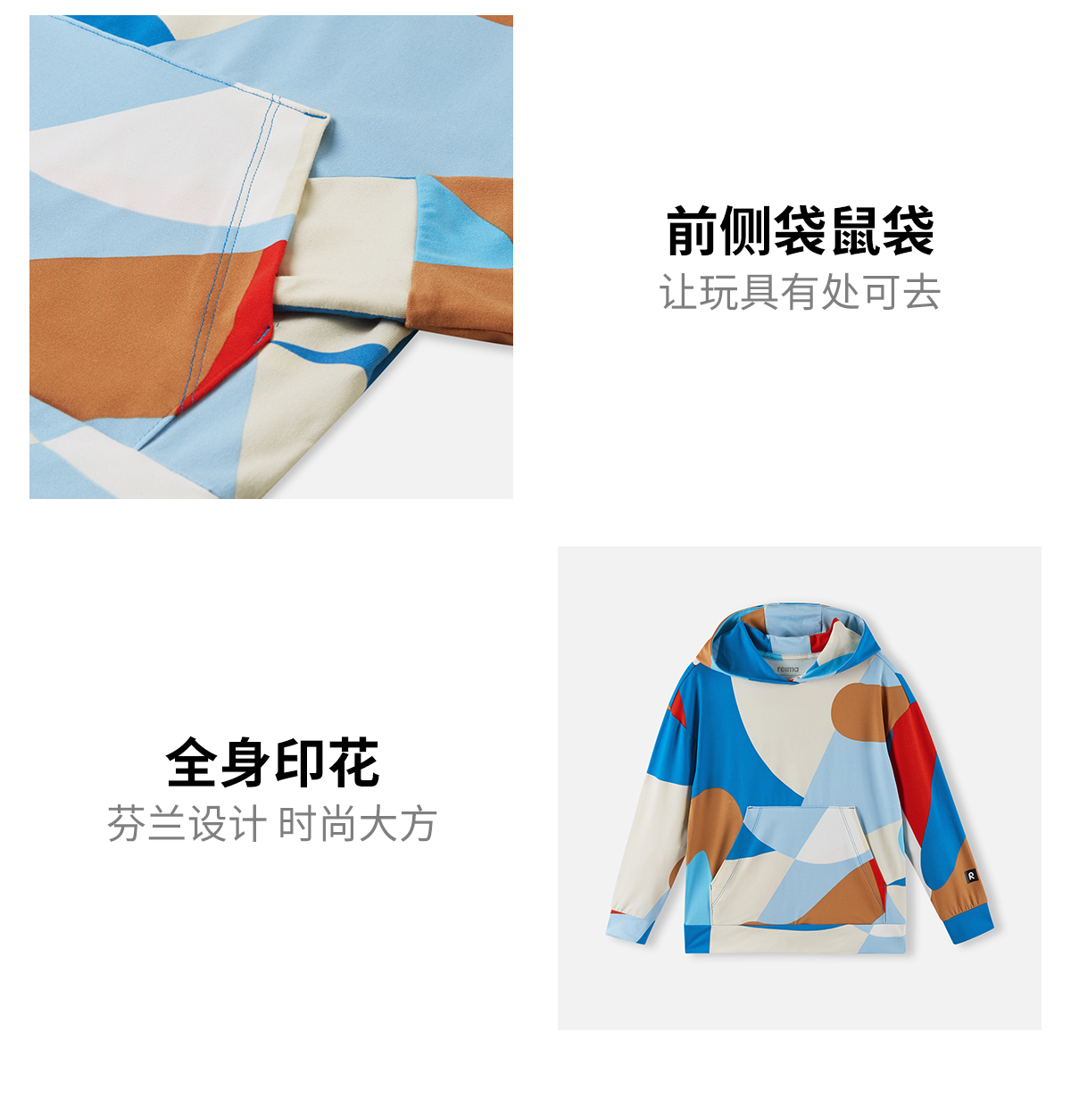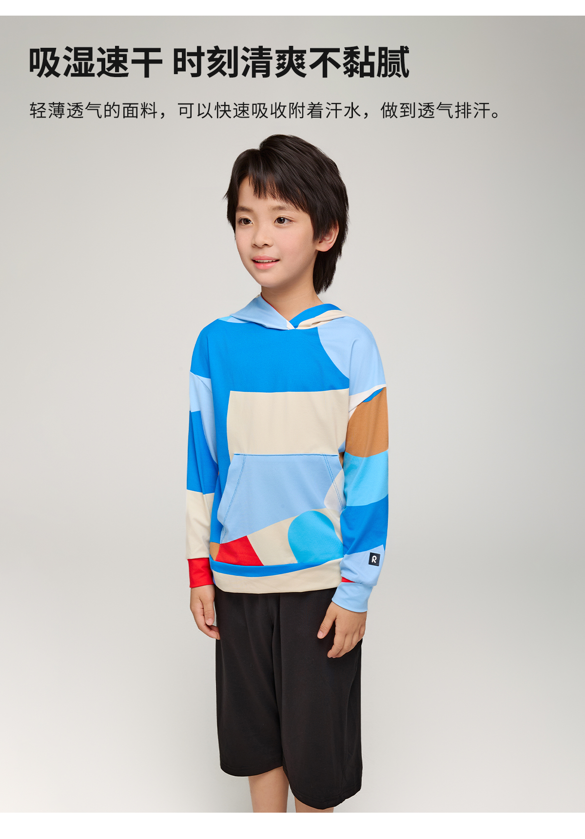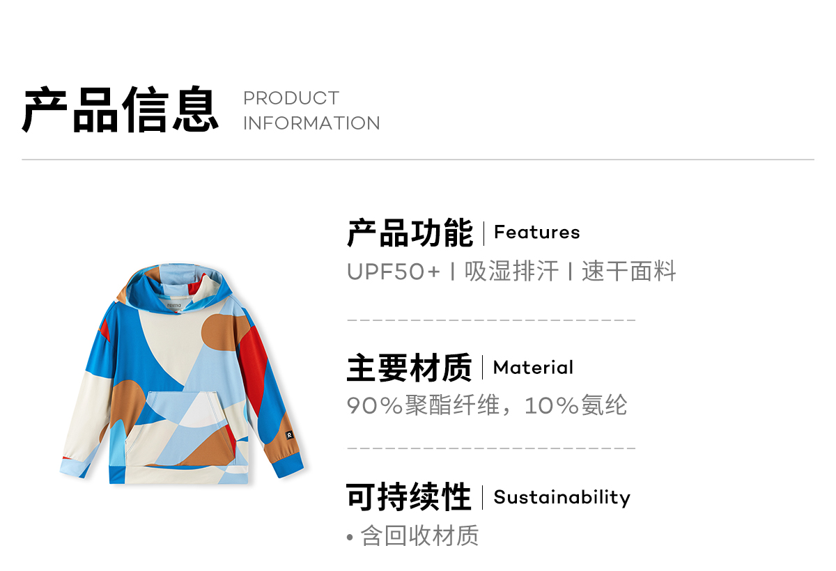 芬兰Reima2025春夏新款男女儿童中童防晒吸湿速干印花针织连帽衫