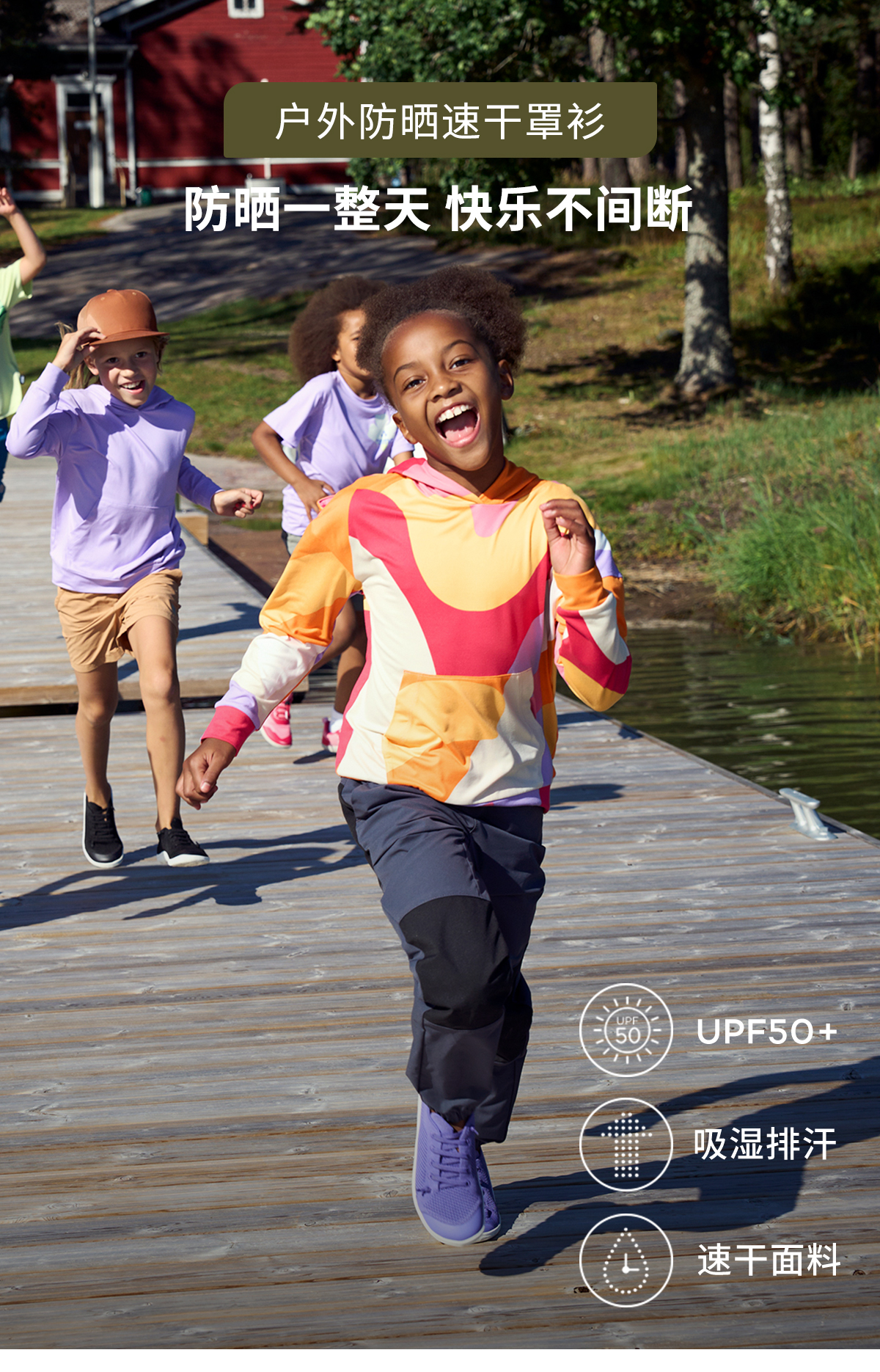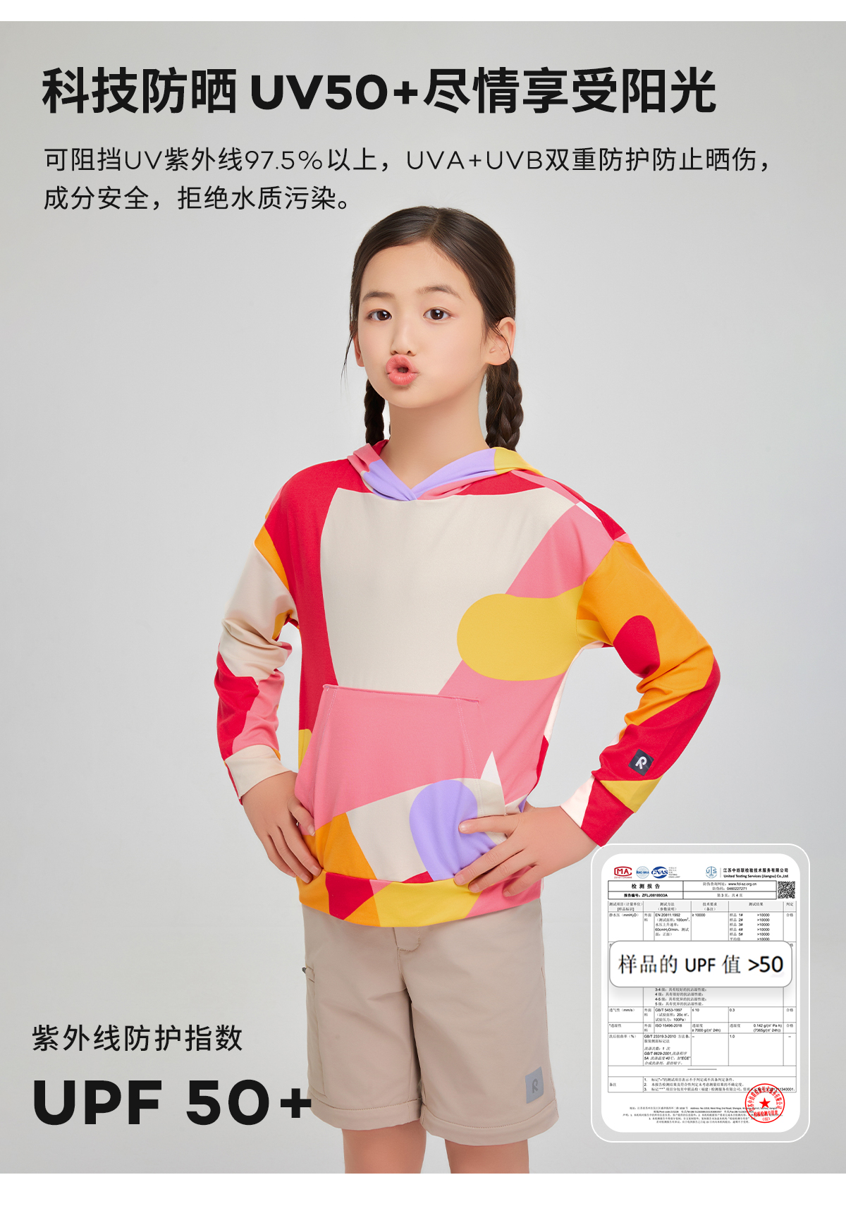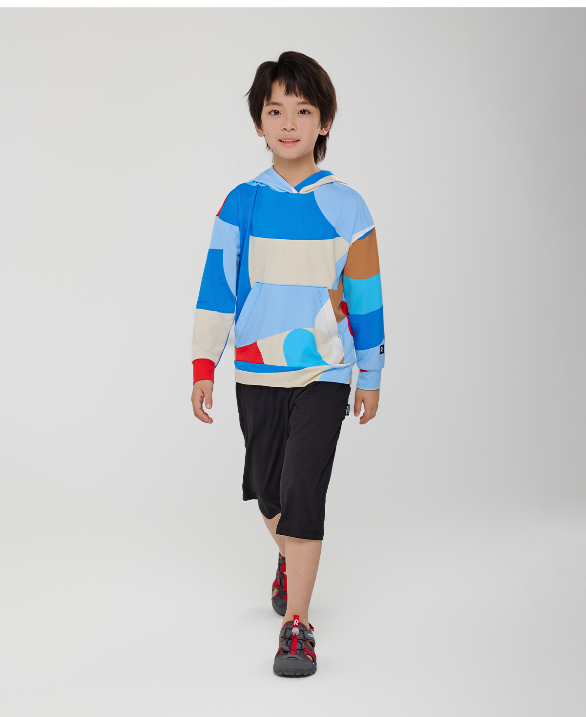 芬兰Reima2025春夏新款男女儿童中童防晒吸湿速干印花针织连帽衫