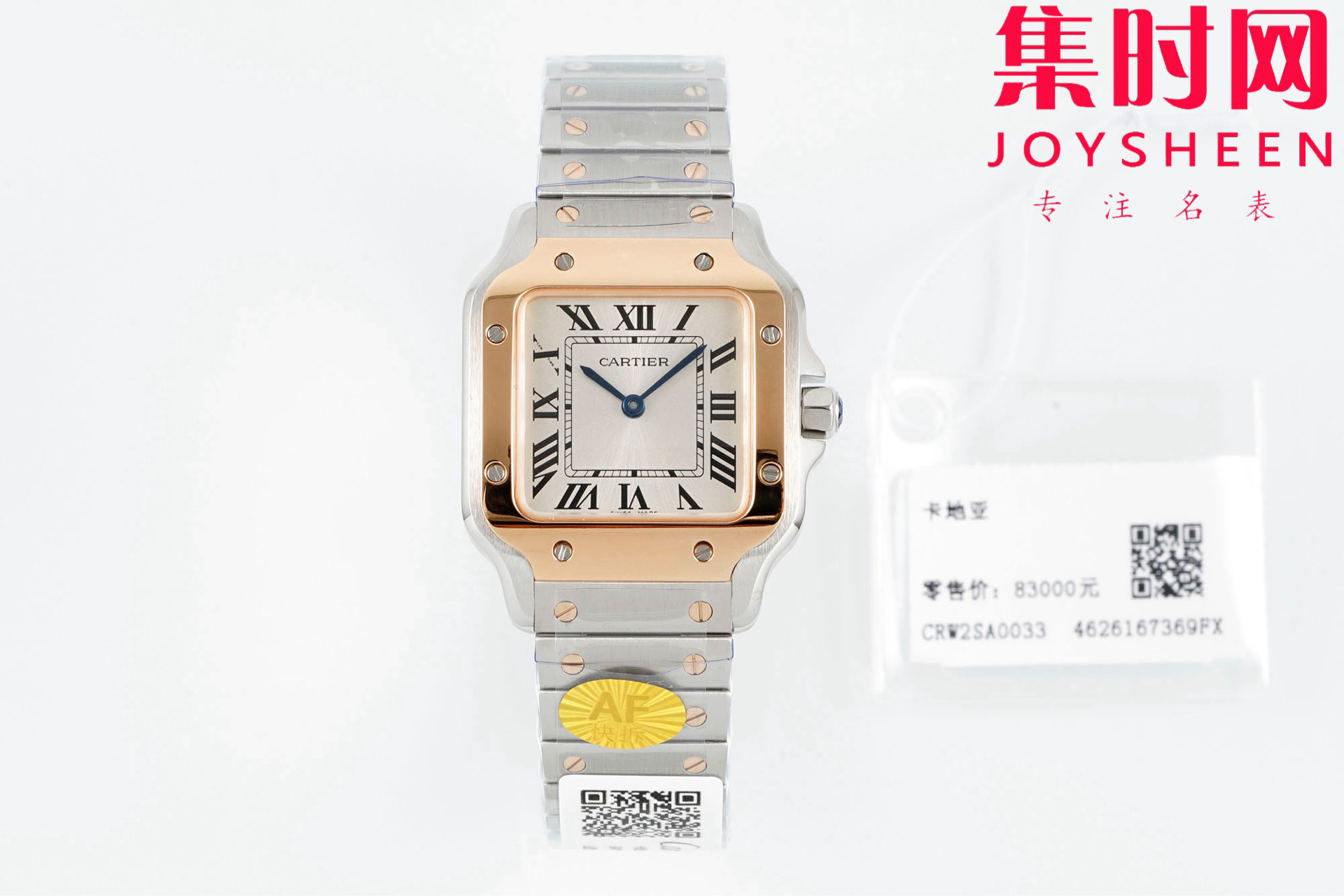 AF卡地亚桑托斯 山度士系列 女款迷你尺寸 迷你山度士 女士腕表 表盘尺寸:27×34.5mm 316L精钢表壳表带 防刮损蓝宝石镜面 瑞士石英机芯