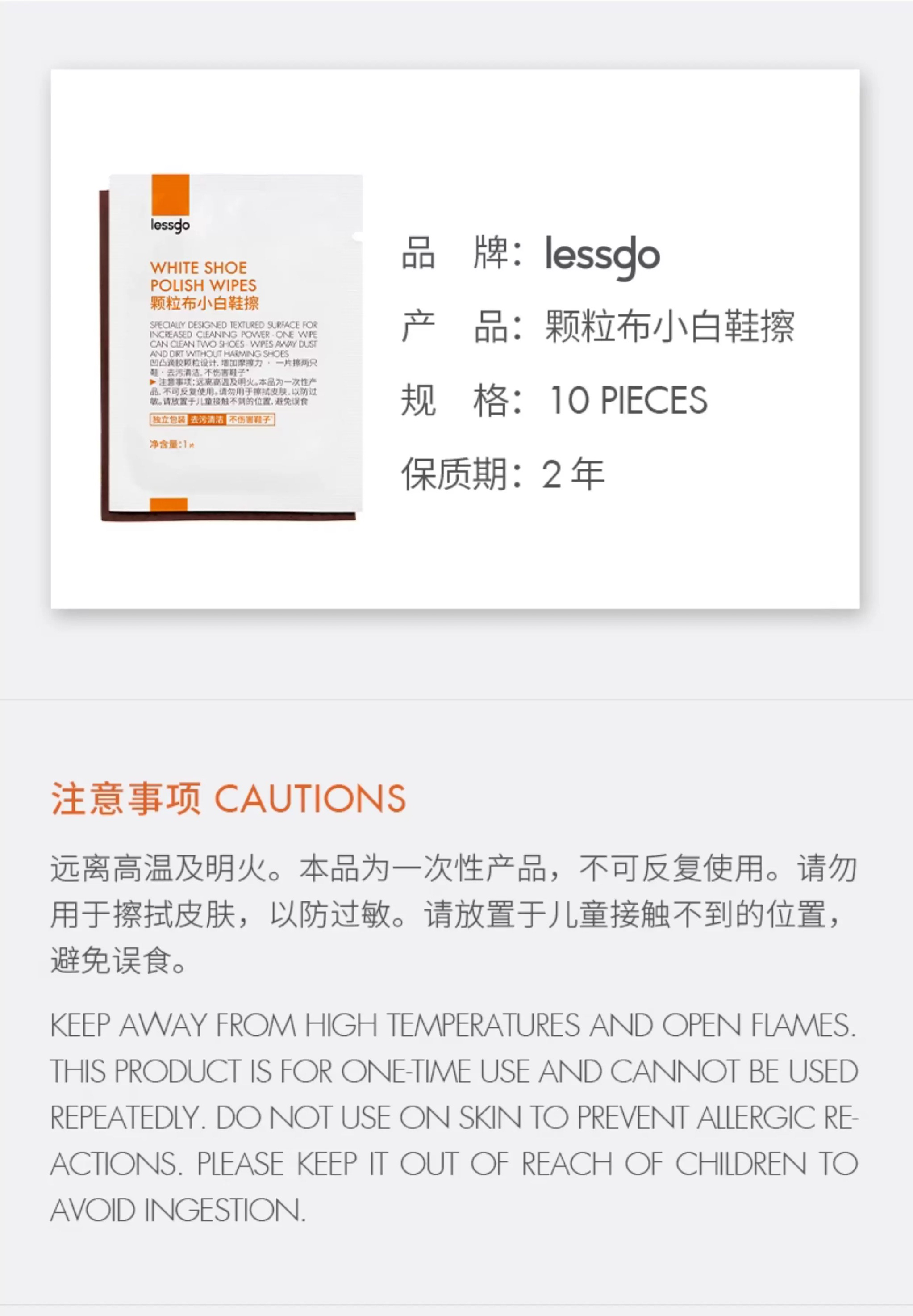 lessgo利事多颗粒布小白鞋擦10片/盒