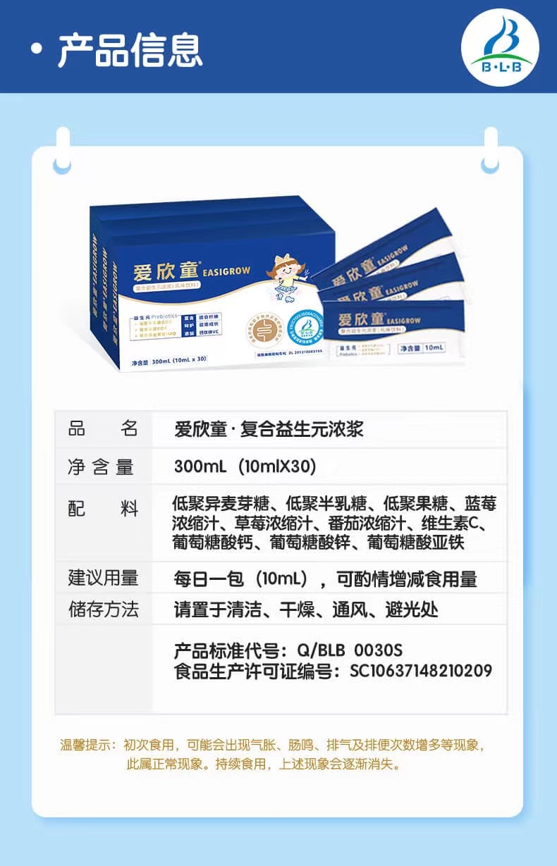 爱欣复合童益生元浓浆低聚果糖儿童10ml*30条