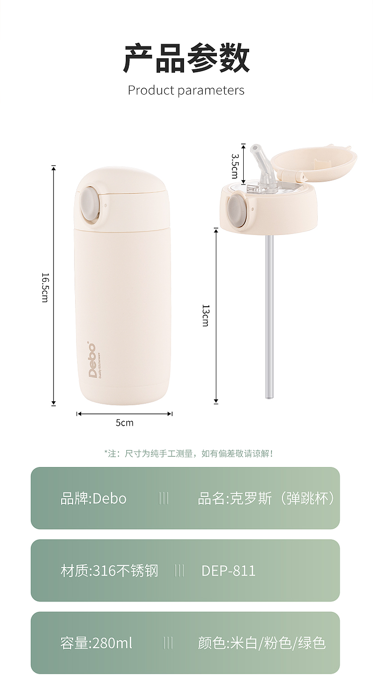 Debo德铂克罗斯316不锈钢保温杯弹跳杯