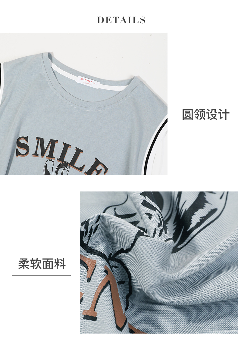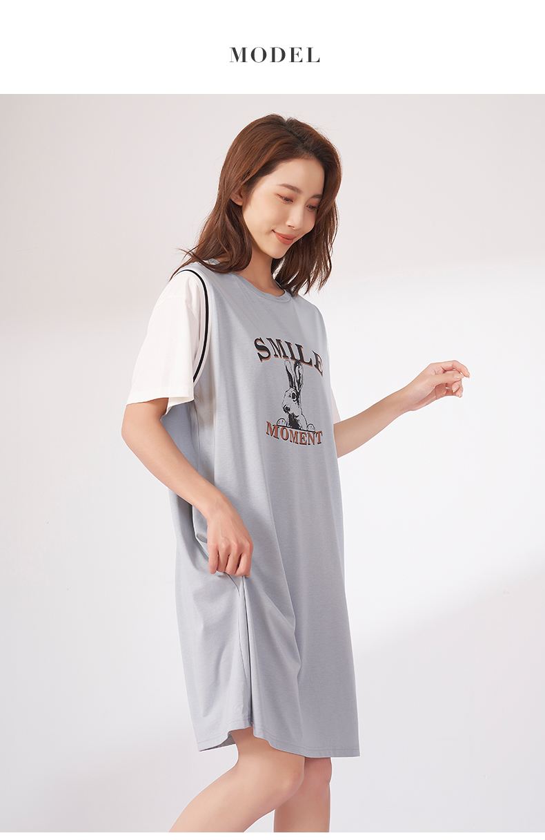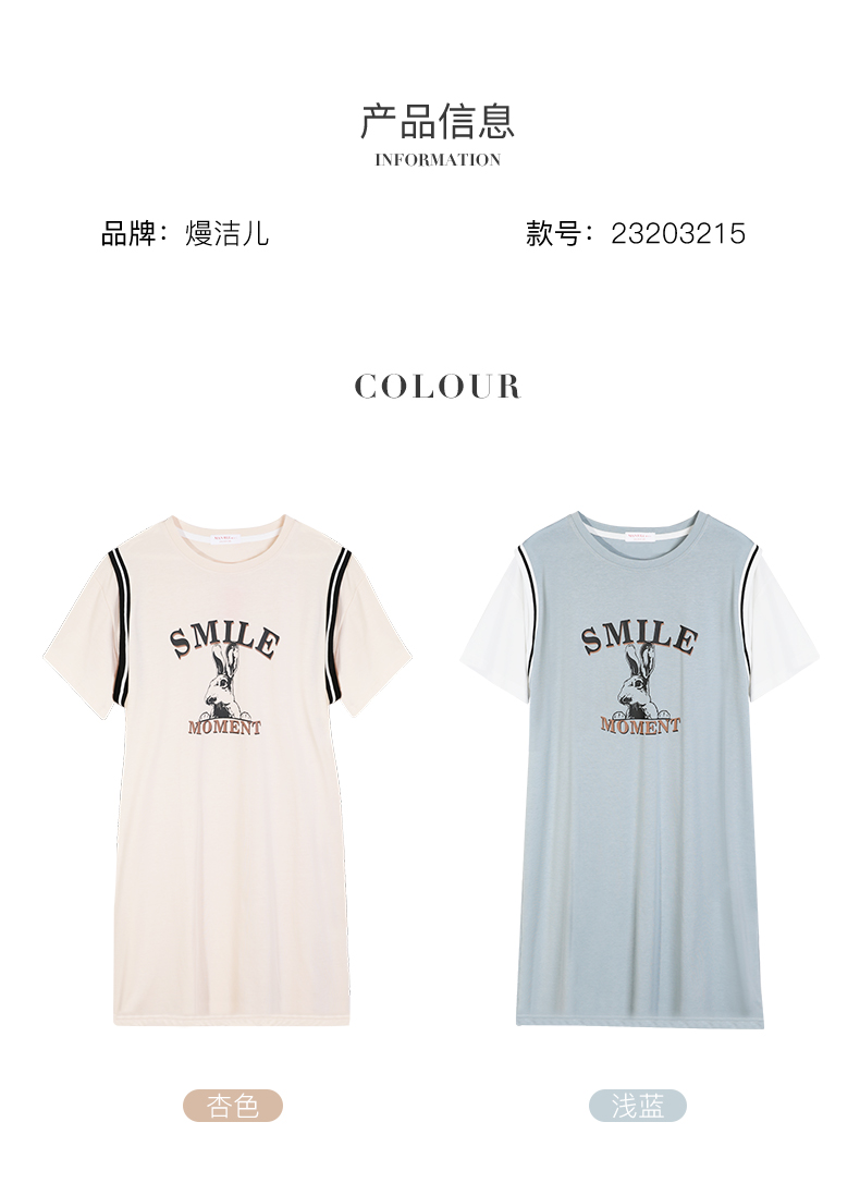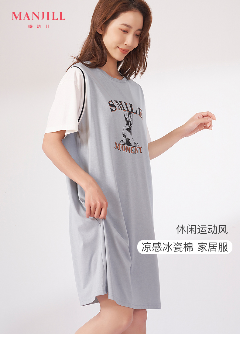 熳洁儿 女士家居服冰瓷棉休闲圆领短袖裙睡衣可外穿23203215