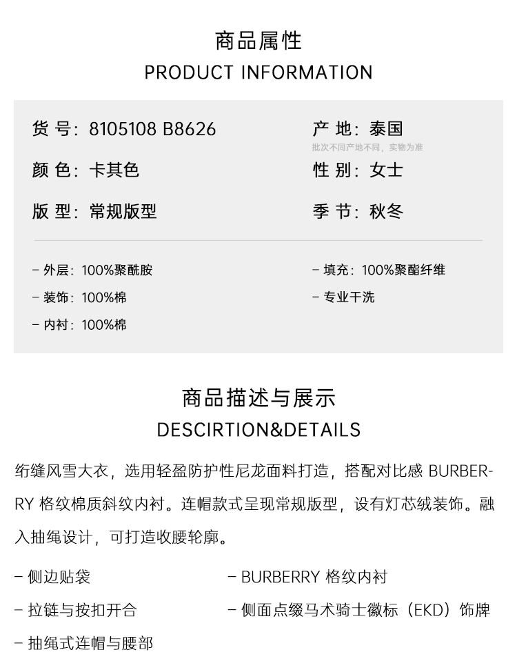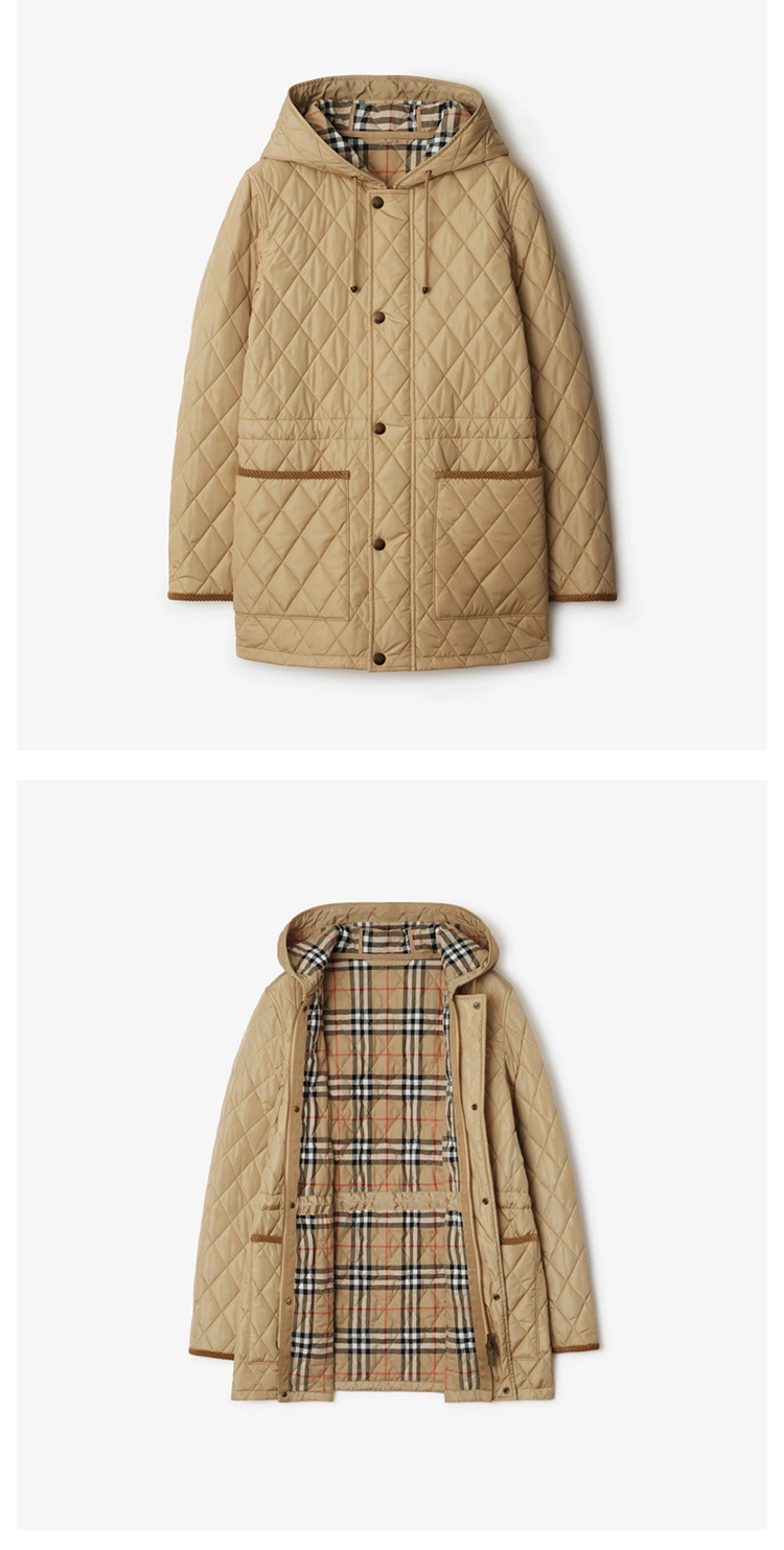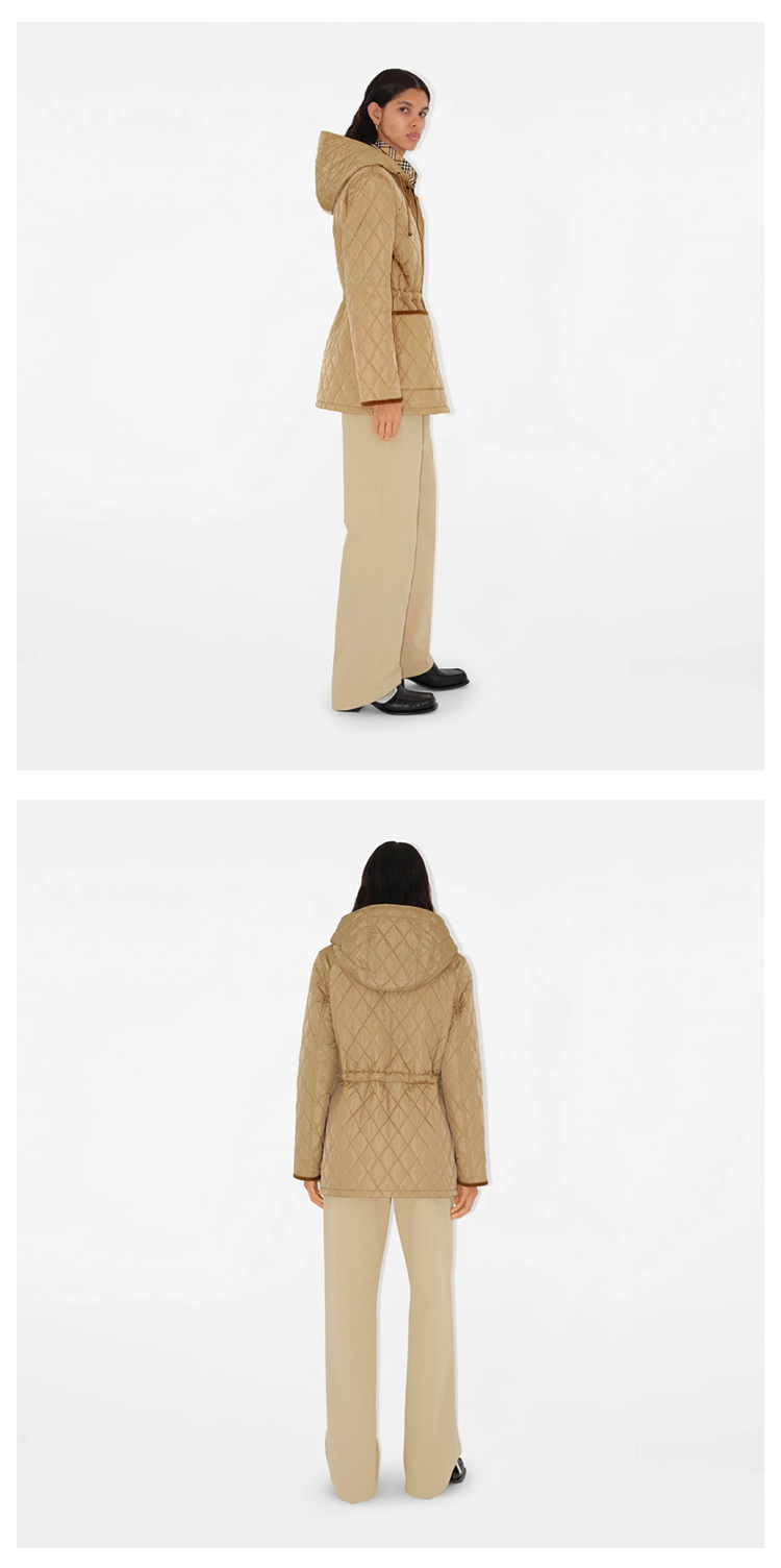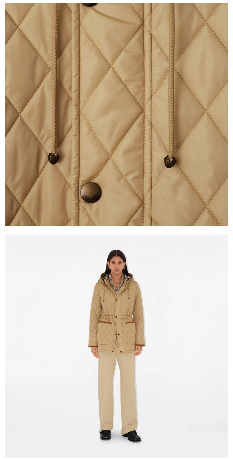 BURBERRY 巴宝莉 女士马术骑士设计标签绗缝尼龙派克大衣棉服 卡其色 8105108 B8626