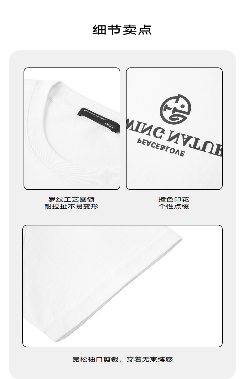 GXG夏季凉感撞色印花简约宽松休闲圆领短袖t恤男
