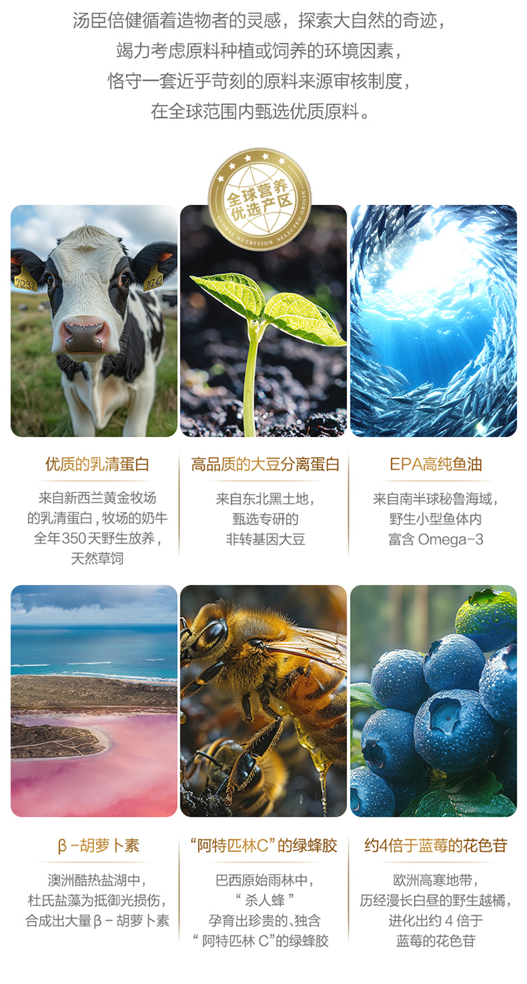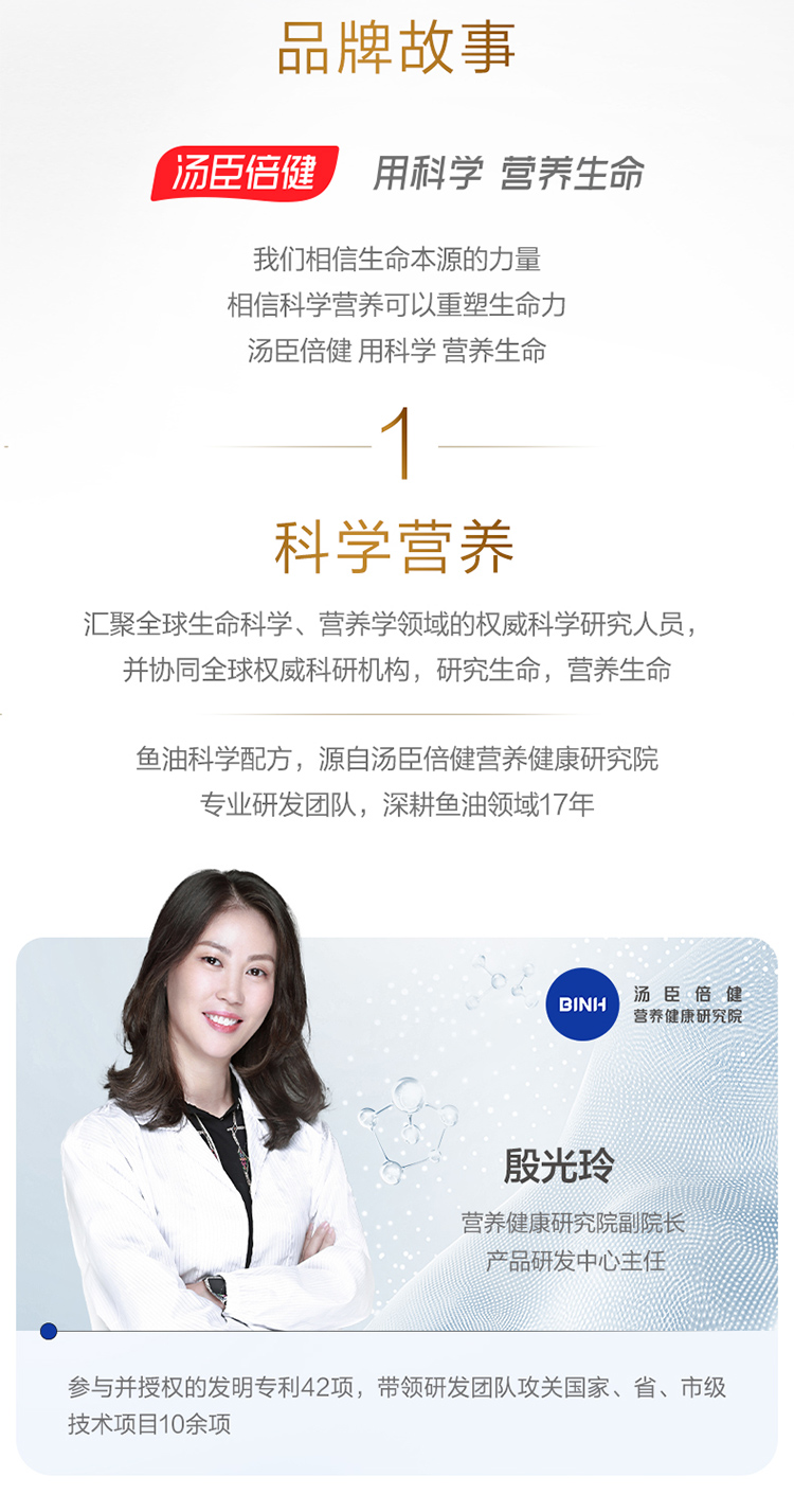 - 作为全球膳食营养补充剂行业领先者,汤臣倍健实施科学营养战略,建立了全面的膳食营养补充剂科学体系,携手全球前沿科研力量,以极致的科学精神,打造极致的科学营养产品力。
