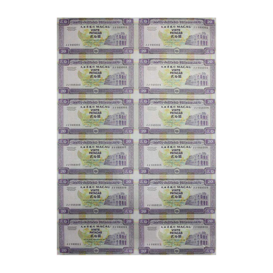 【藏品名称】澳门大西洋银行20元整版钞(12连体)