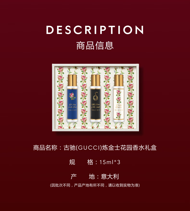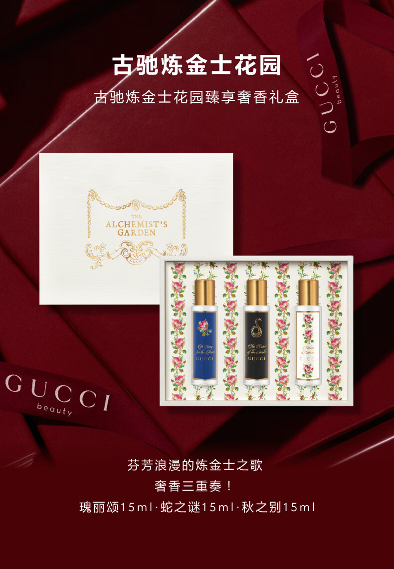 古驰炼金士花园臻享奢香礼盒(秋之别芳香水15ml+瑰丽颂香水15ml+蛇之谜香水15ml)