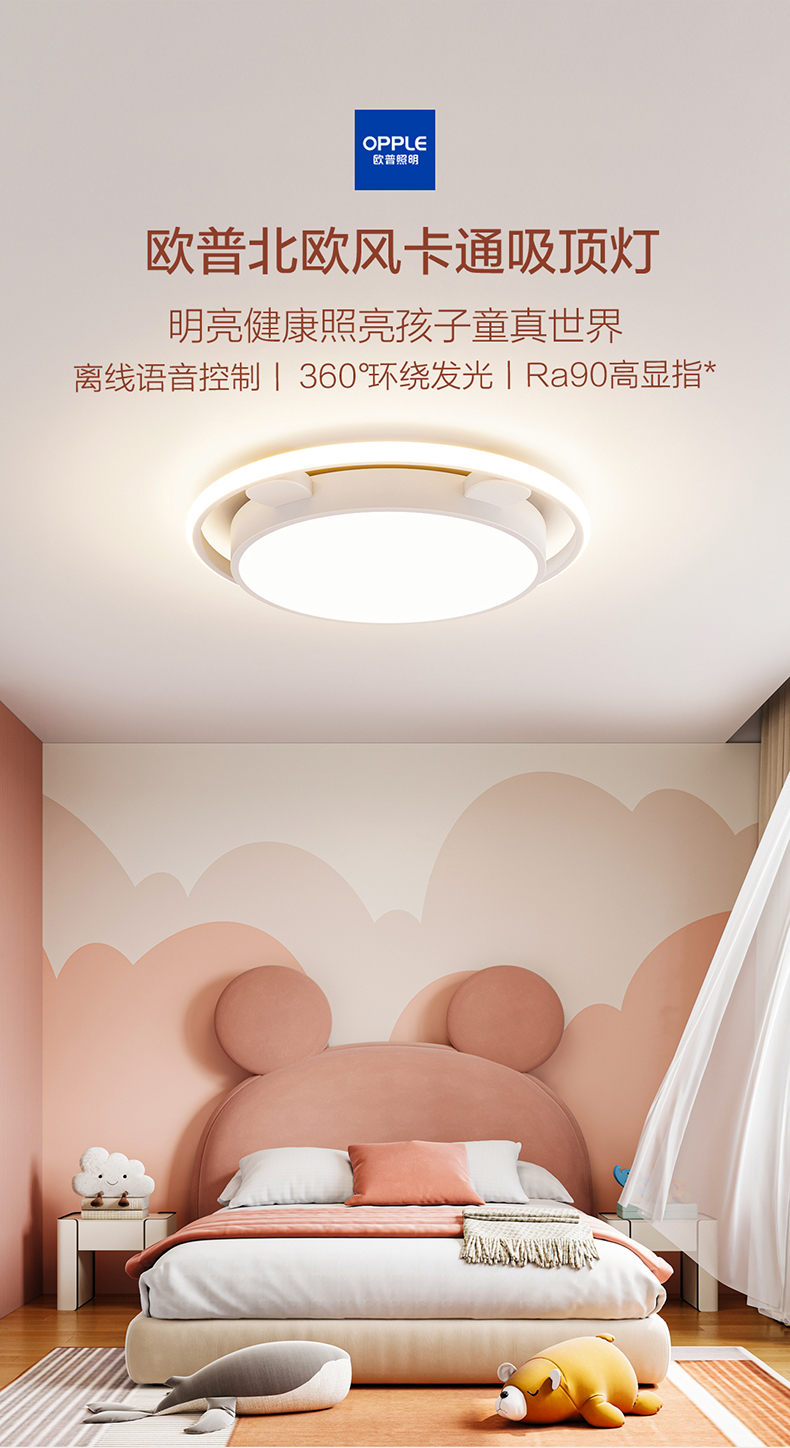 欧普(OPPLE)萌萌熊卧室设计美学简约现代圆形声控儿童房吸顶灯