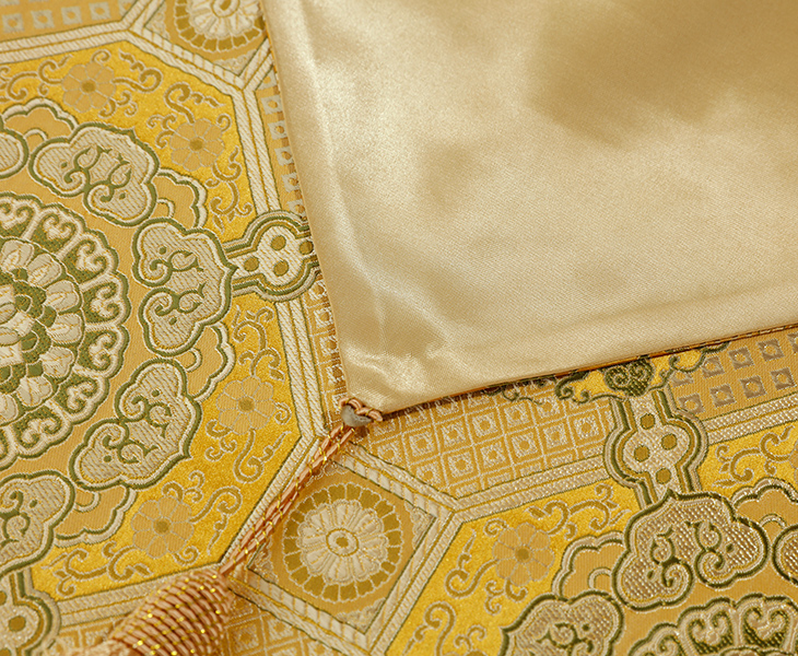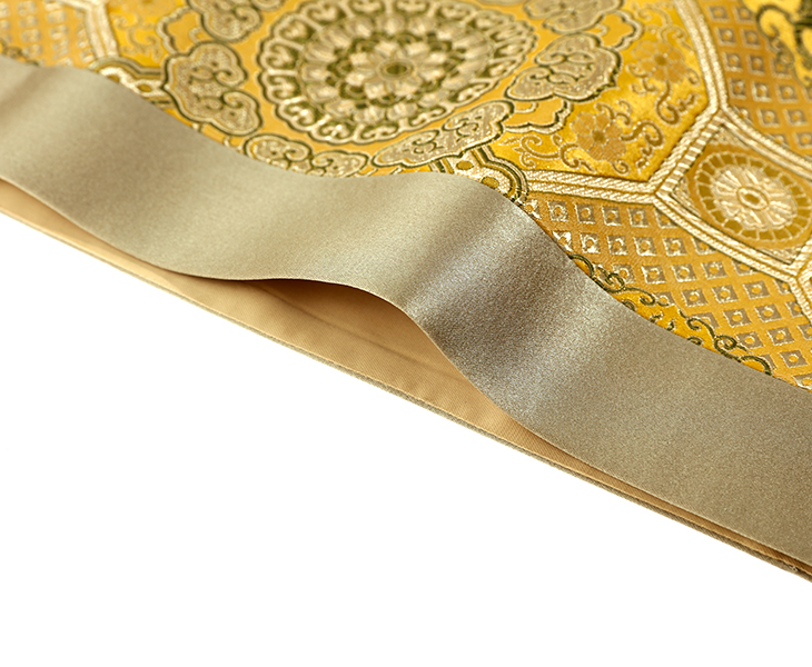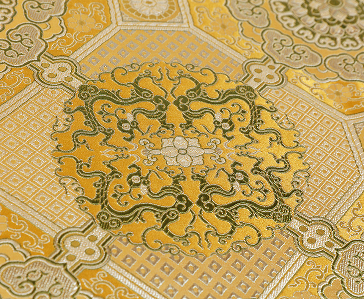 主料为织锦缎,花纹精致,质地紧密厚实。