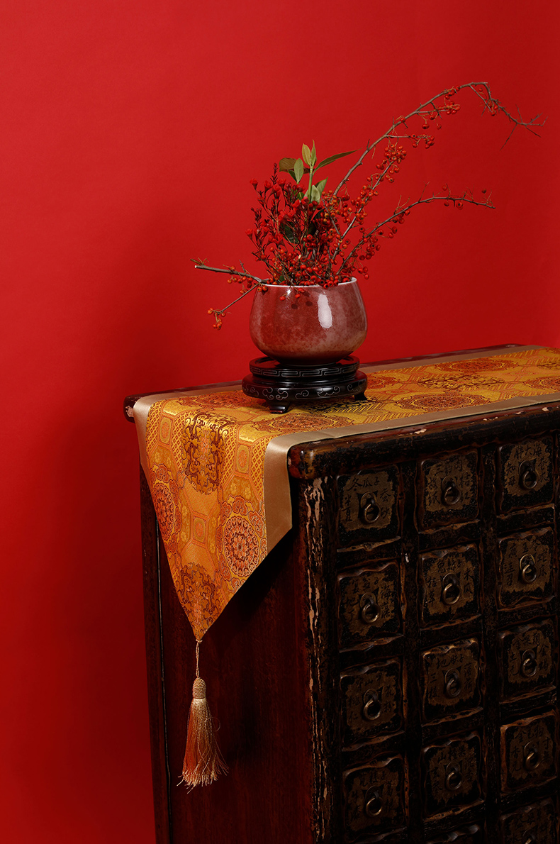 桌旗两端为三角形造型,简洁大方,易于搭配。