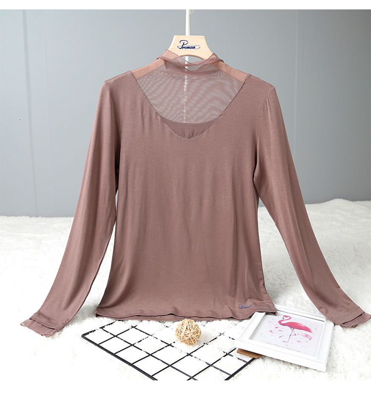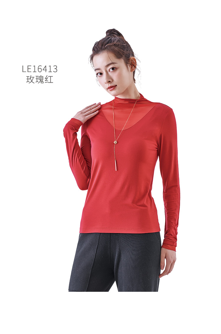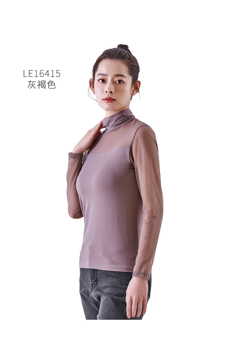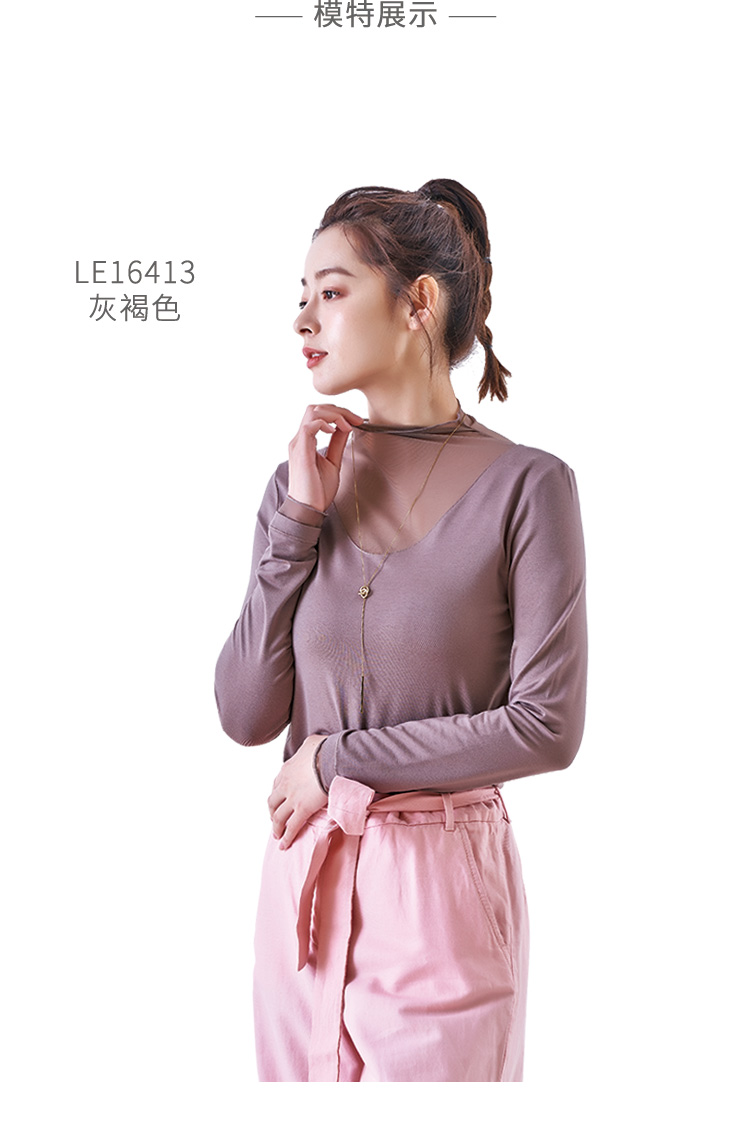 四季女士修身百搭网纱乳肤长袖保暖时尚打底衫LE16413 LE16415