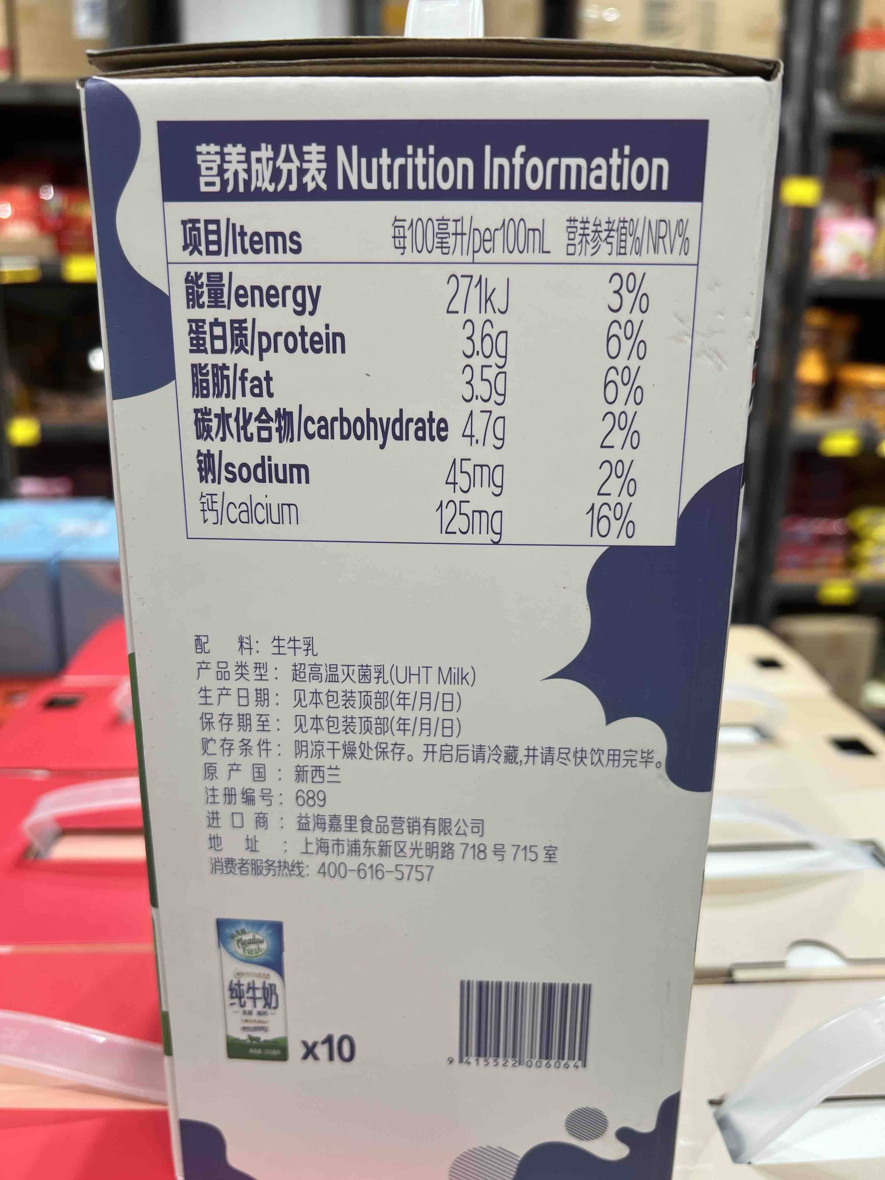 纽麦福蛋白全脂高钙牛奶礼盒装250mlx10