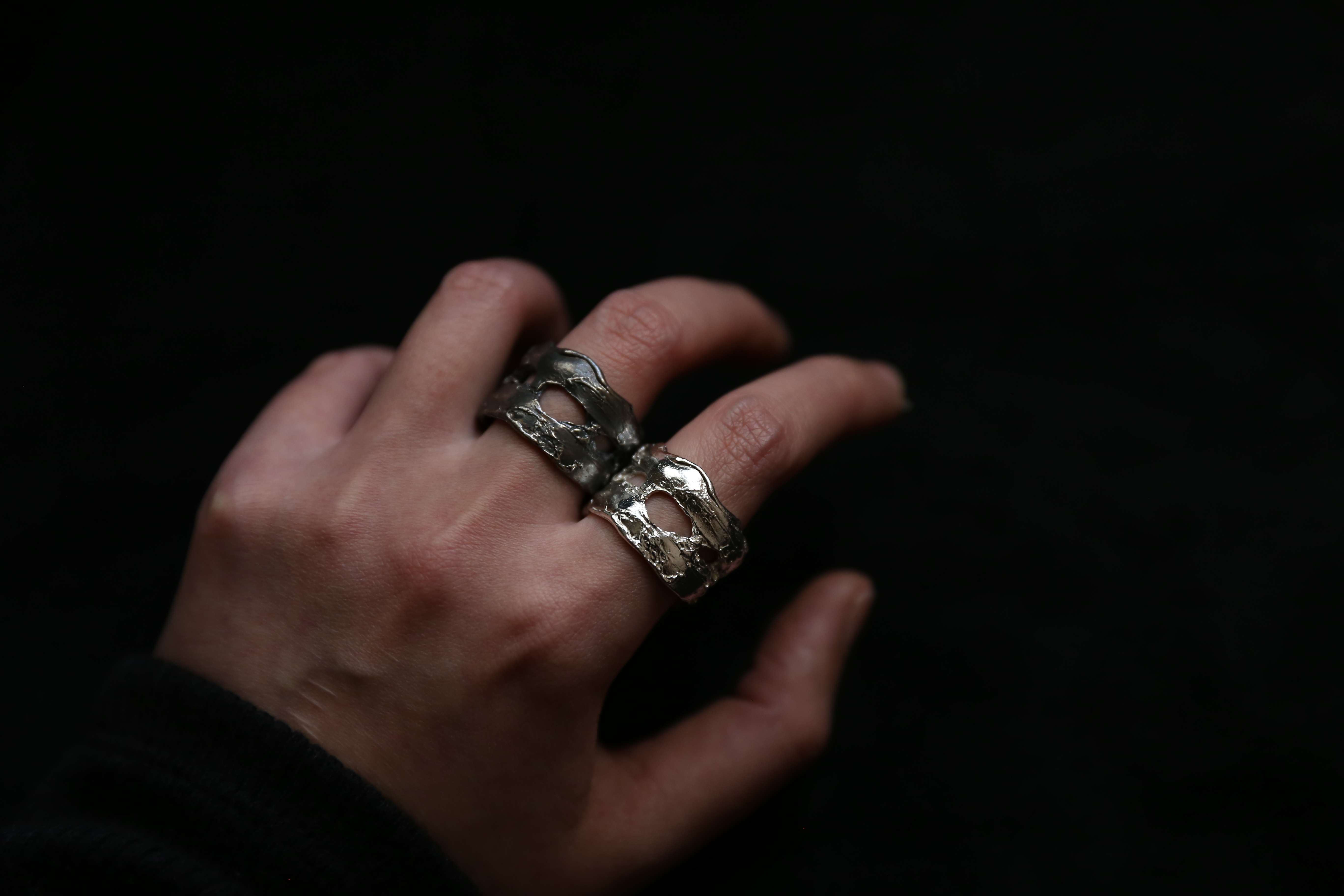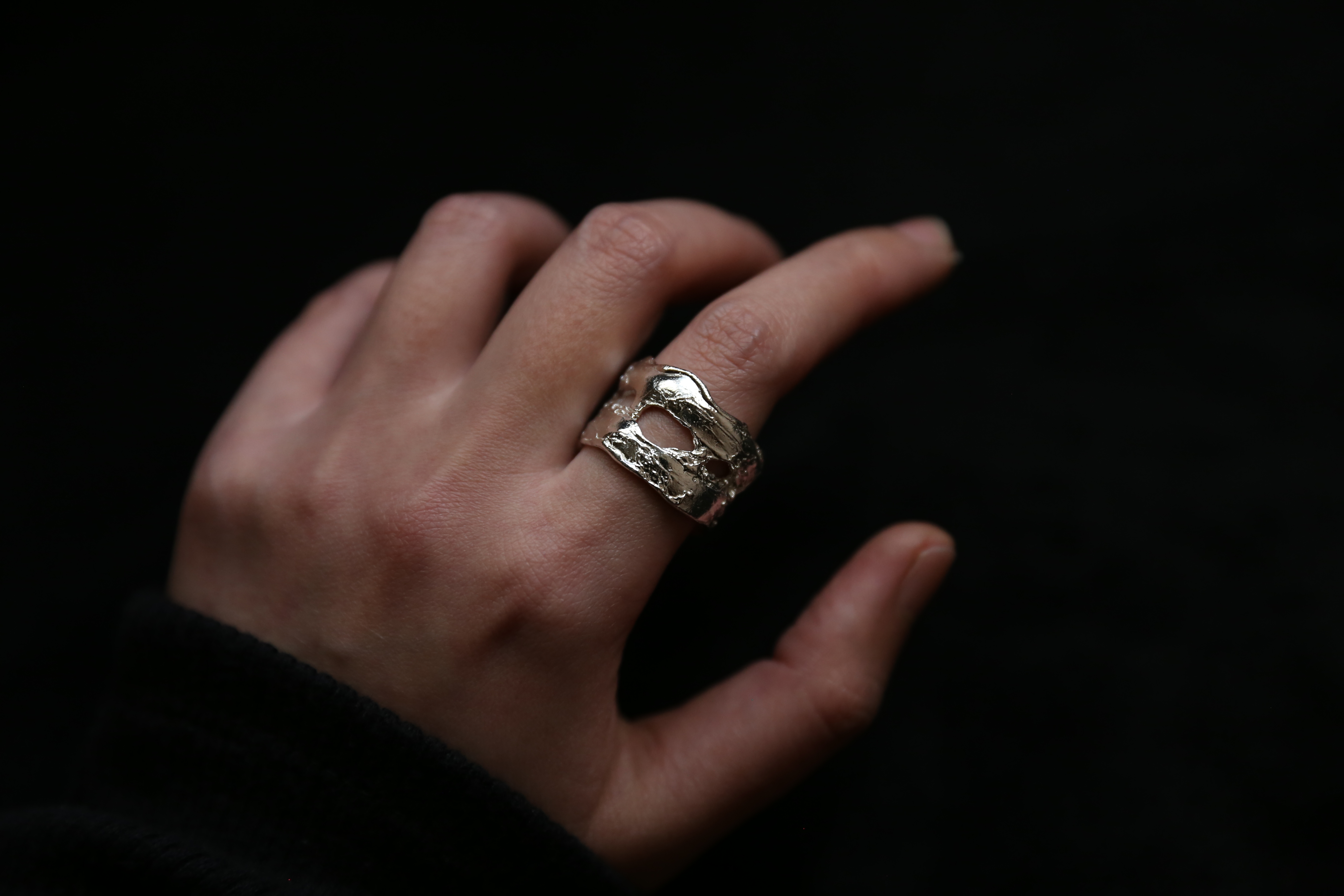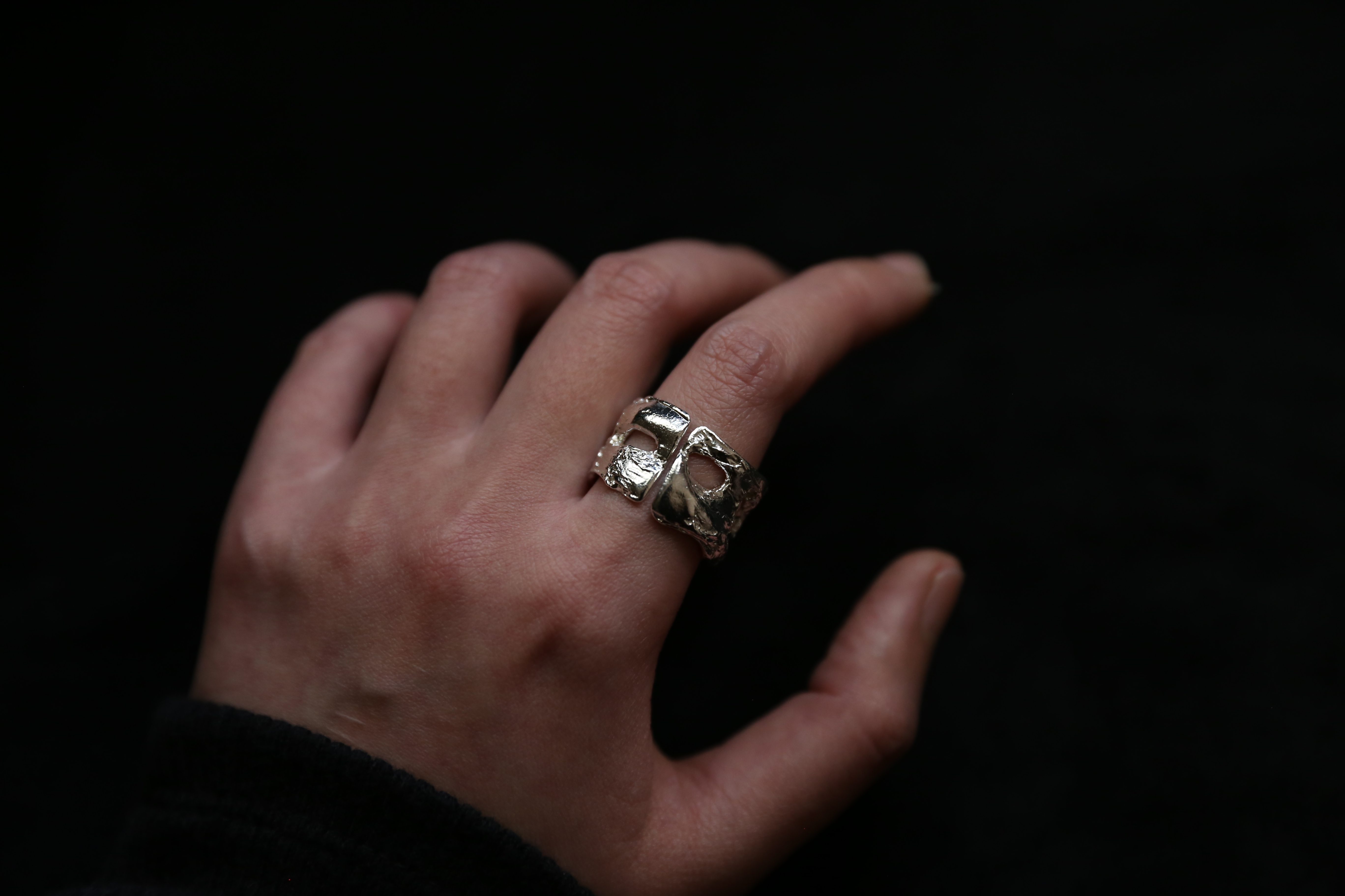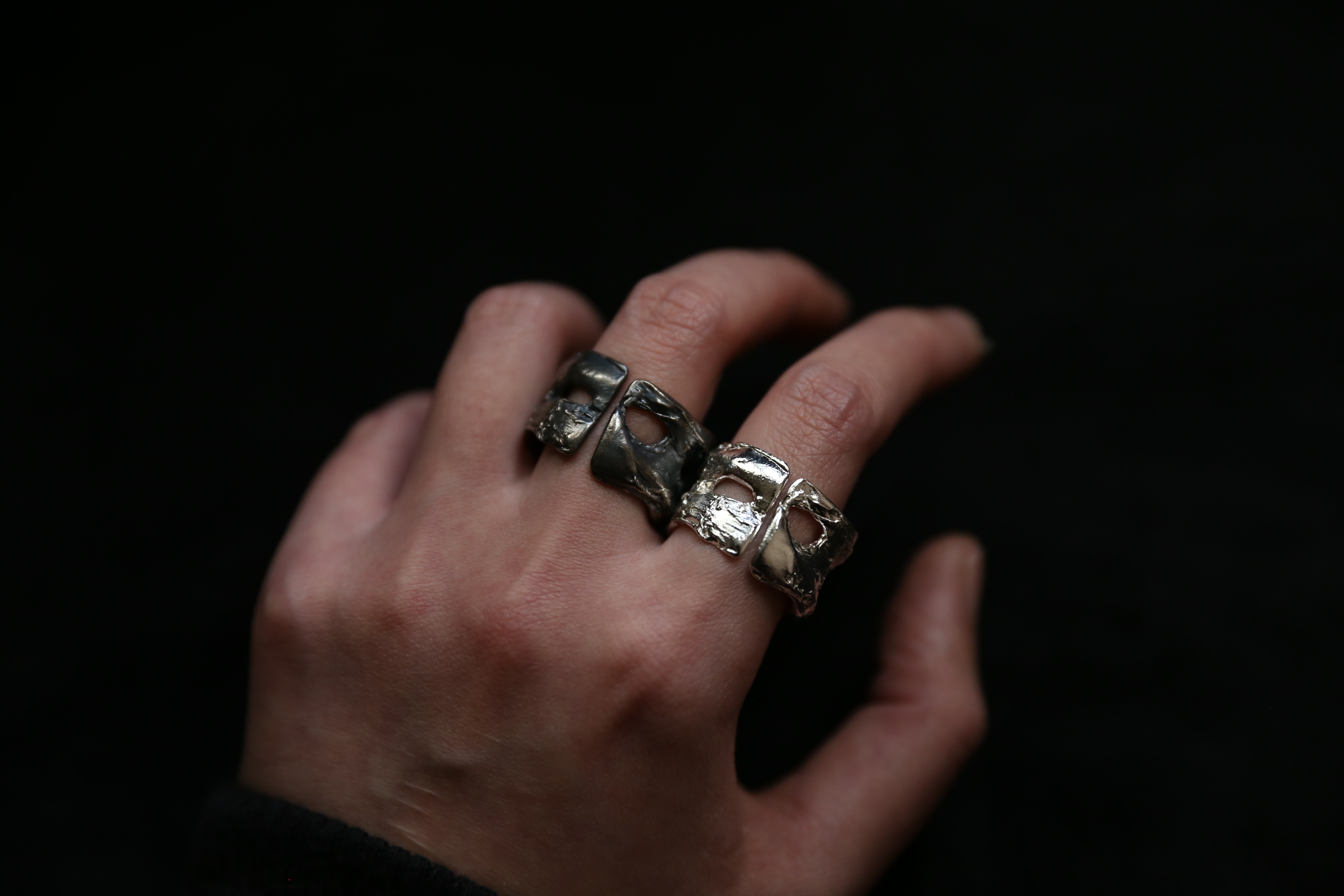 925银手工塑料肌理戒指