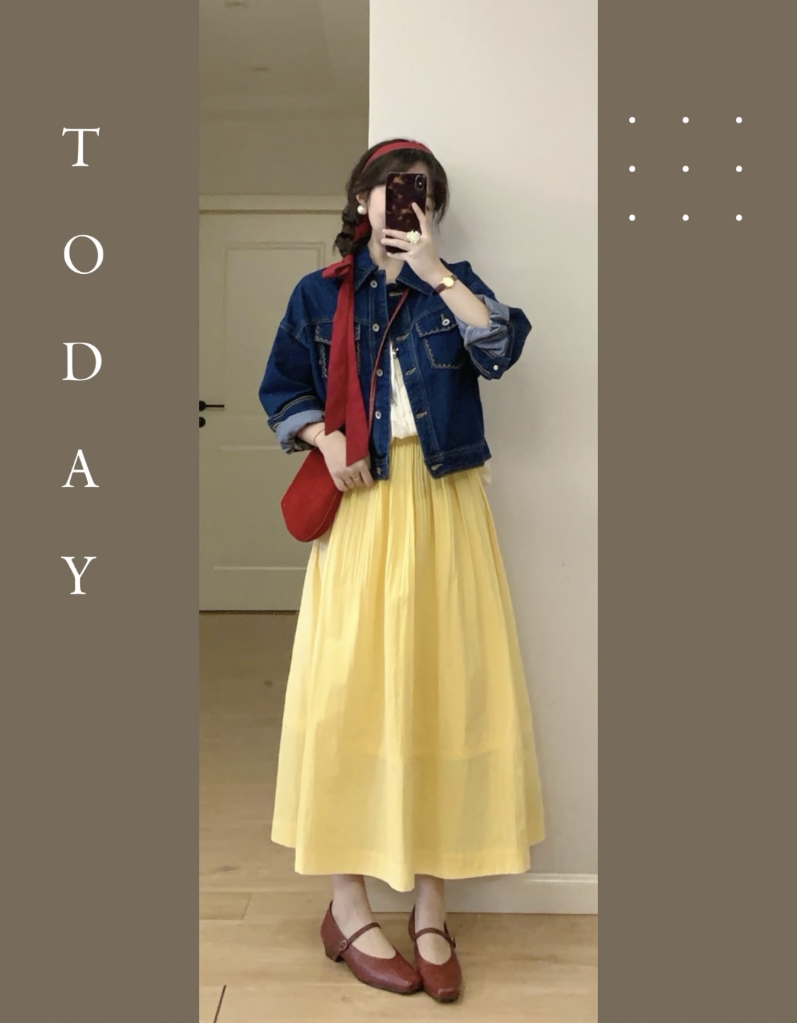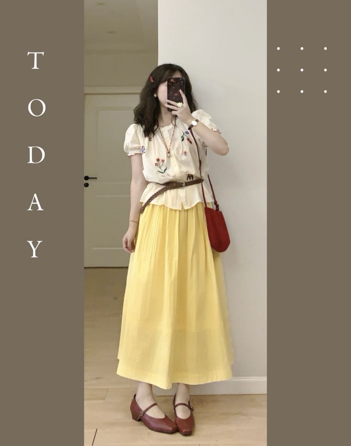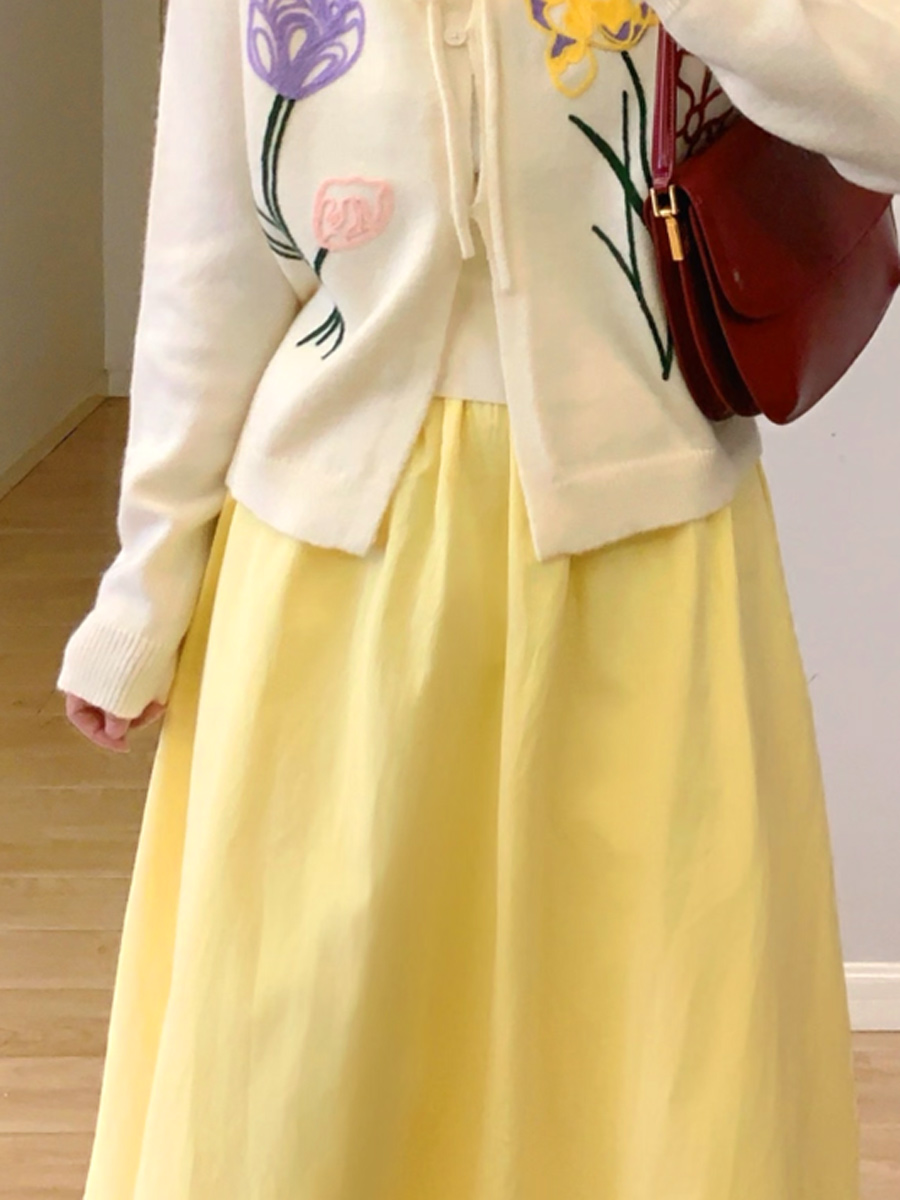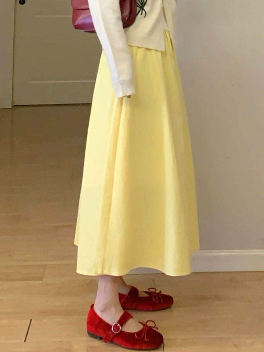 【百图lulu定制】【预售4月23日发】【黄玫瑰半裙】点亮一身穿搭 碎褶 A字裙摆 弹力腰围 半身裙