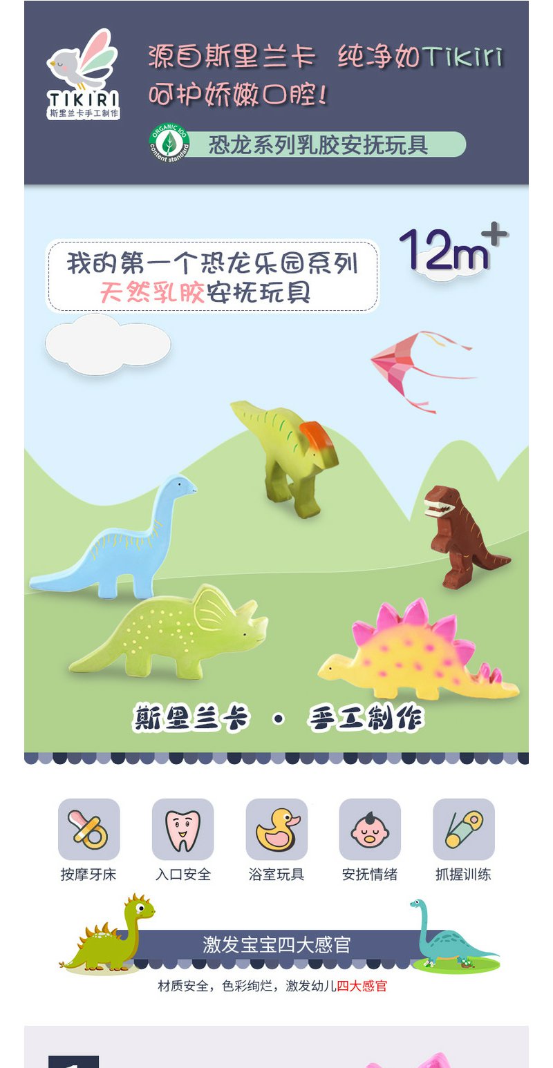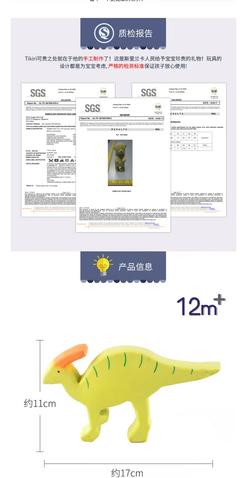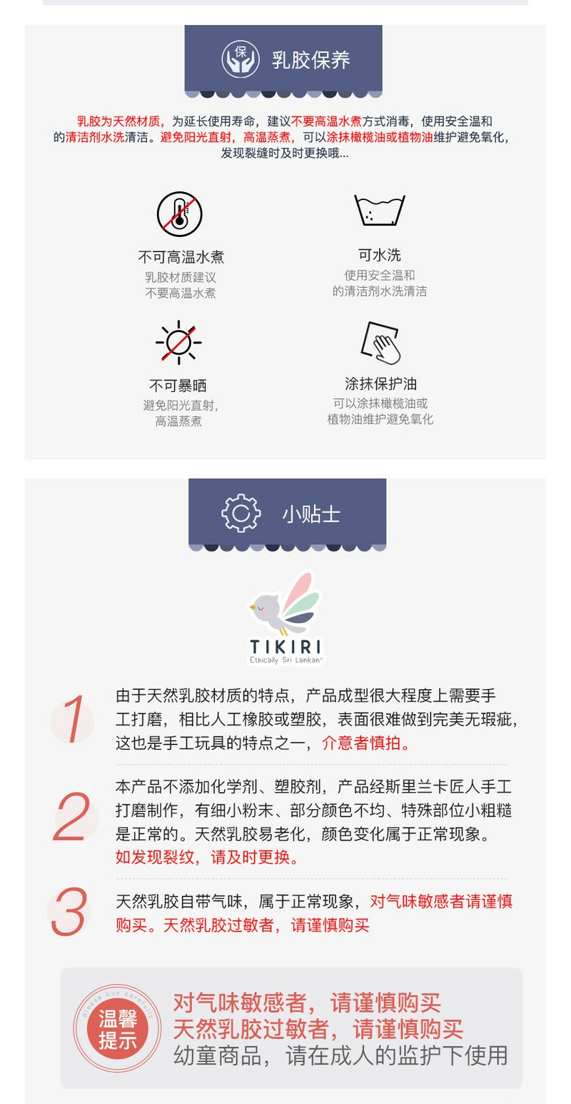 tikiri斯里兰卡婴儿宝宝天然乳胶咬牙胶磨牙棒小鹿摇铃玩具无毒