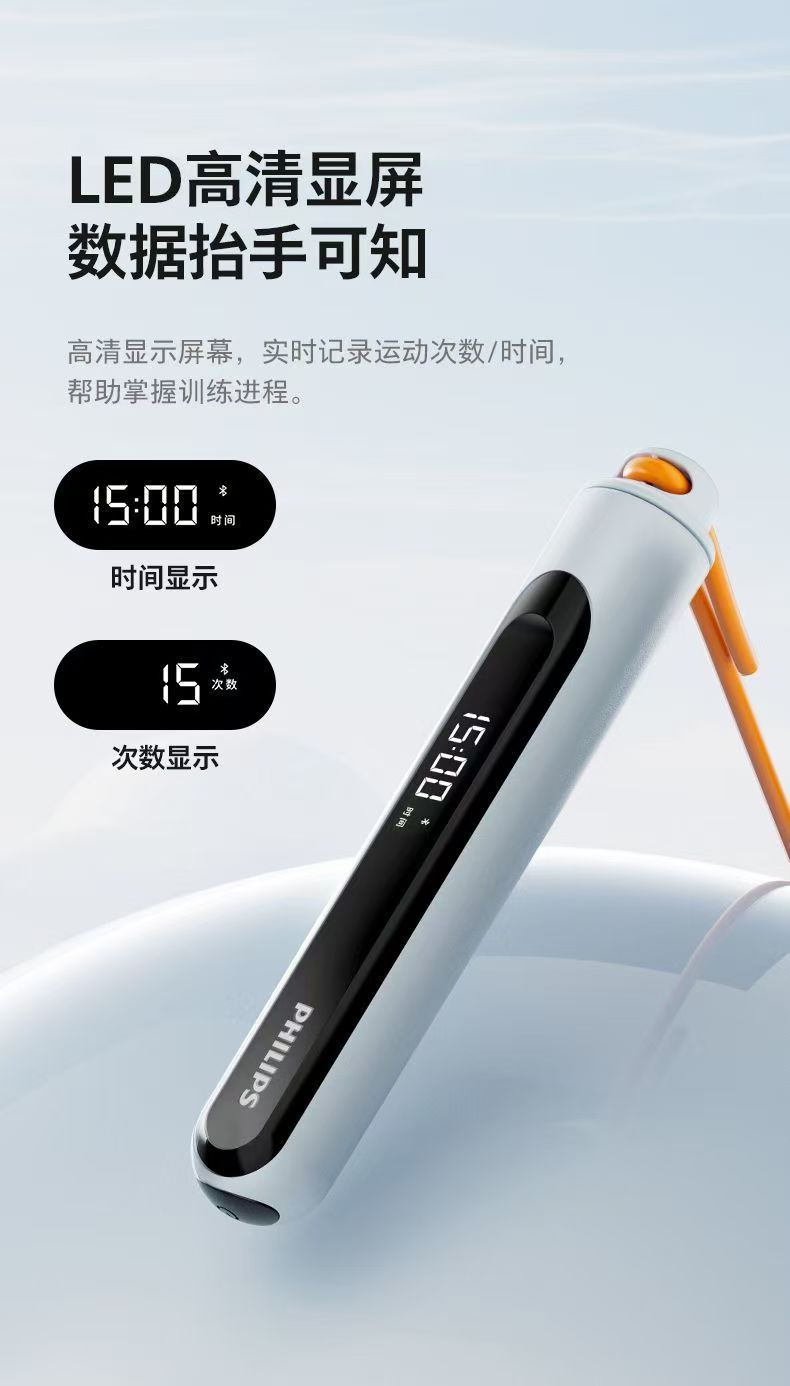 飞利浦智能跳绳减肥专用成人无绳健身电子运动负重计数