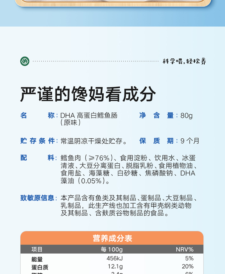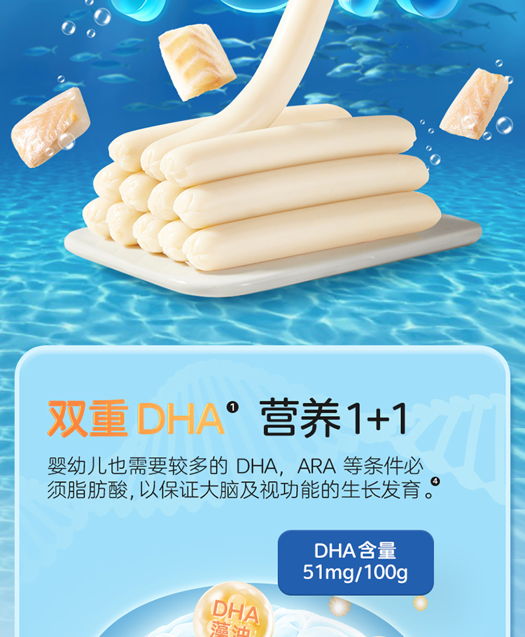 【宝宝馋了】DHA高蛋白鳕鱼肠(原味/玉米味/芝士味) 双重DHA 送12月+婴幼儿食谱