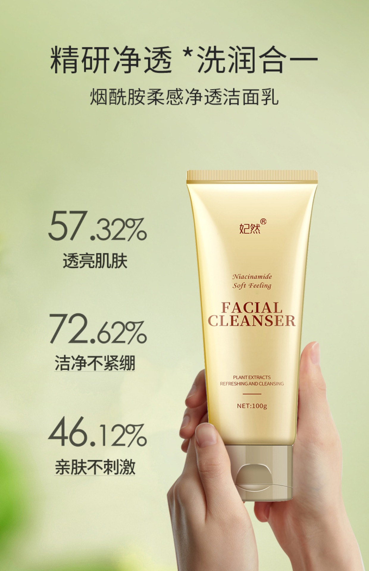 【福利品】妃然烟酰胺柔感净透洁面乳100g 提亮肤色补水保湿深层清洁毛孔控油