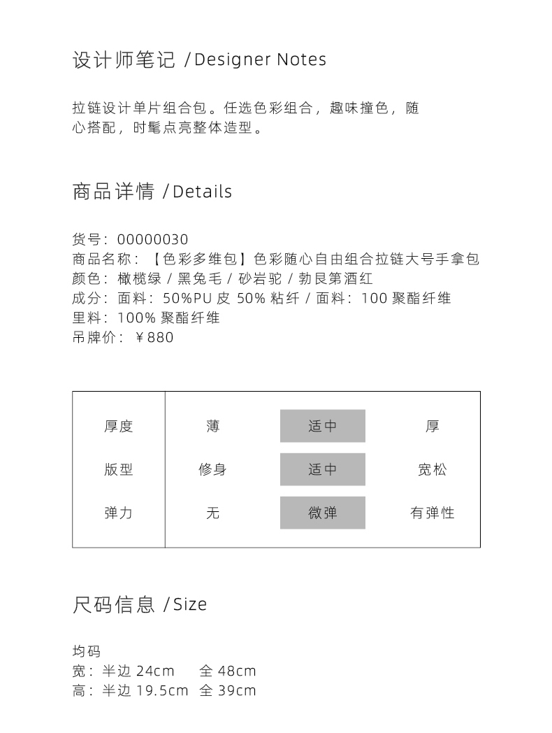 【色彩多维包】色彩随心自由组合拉链大号手拿包/00000030