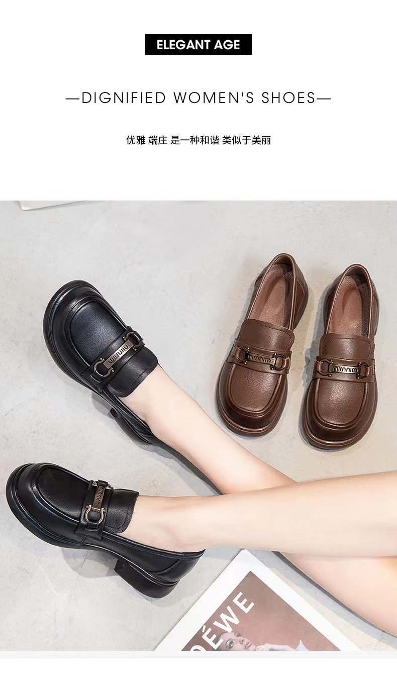 【实付满399送保温杯】【软底浅口乐福鞋】复古休闲女款皮鞋 通勤办公单鞋