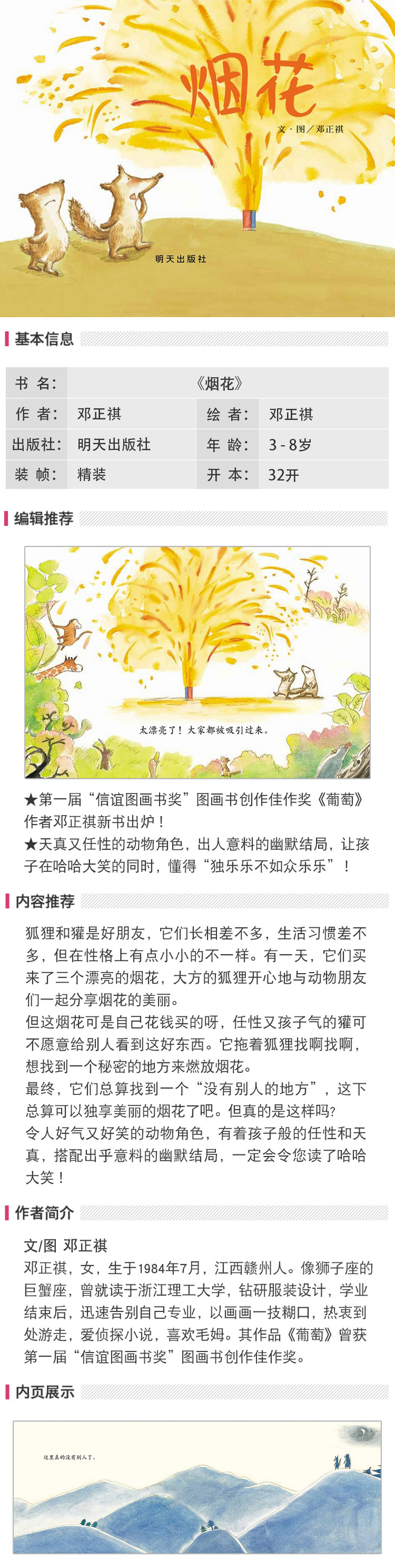 信谊 烟花 邓正祺 3-6岁儿童绘本 正版