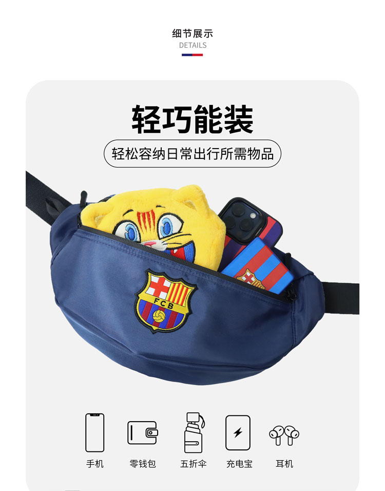 【官方正版】巴塞罗那俱乐部|巴萨深蓝色腰包斜挎包球迷周边