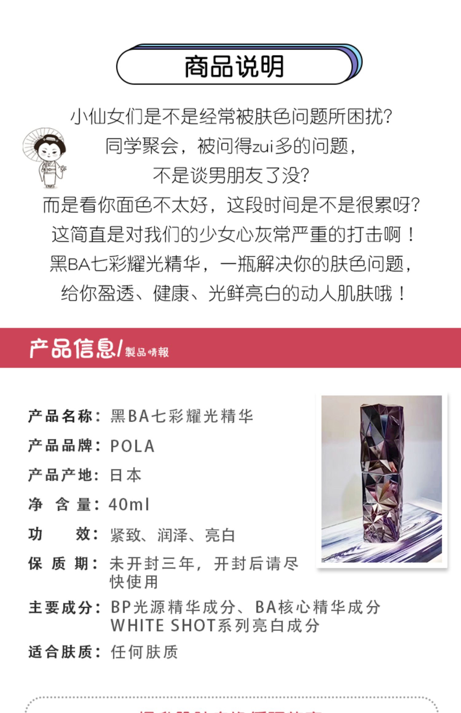 日本POLA宝丽黑BA光彩七彩精华液抗糖提亮紧致保湿修护40ml