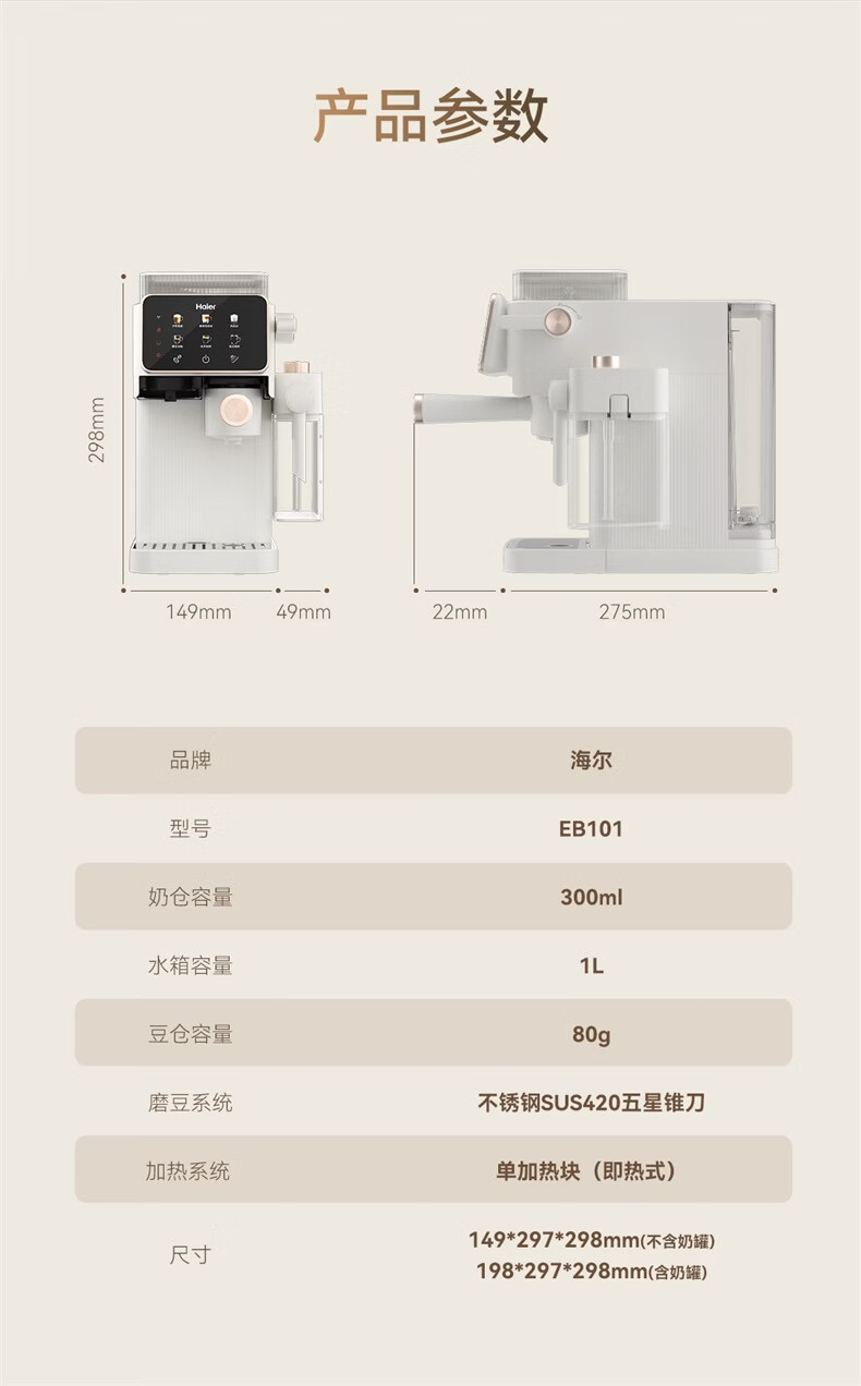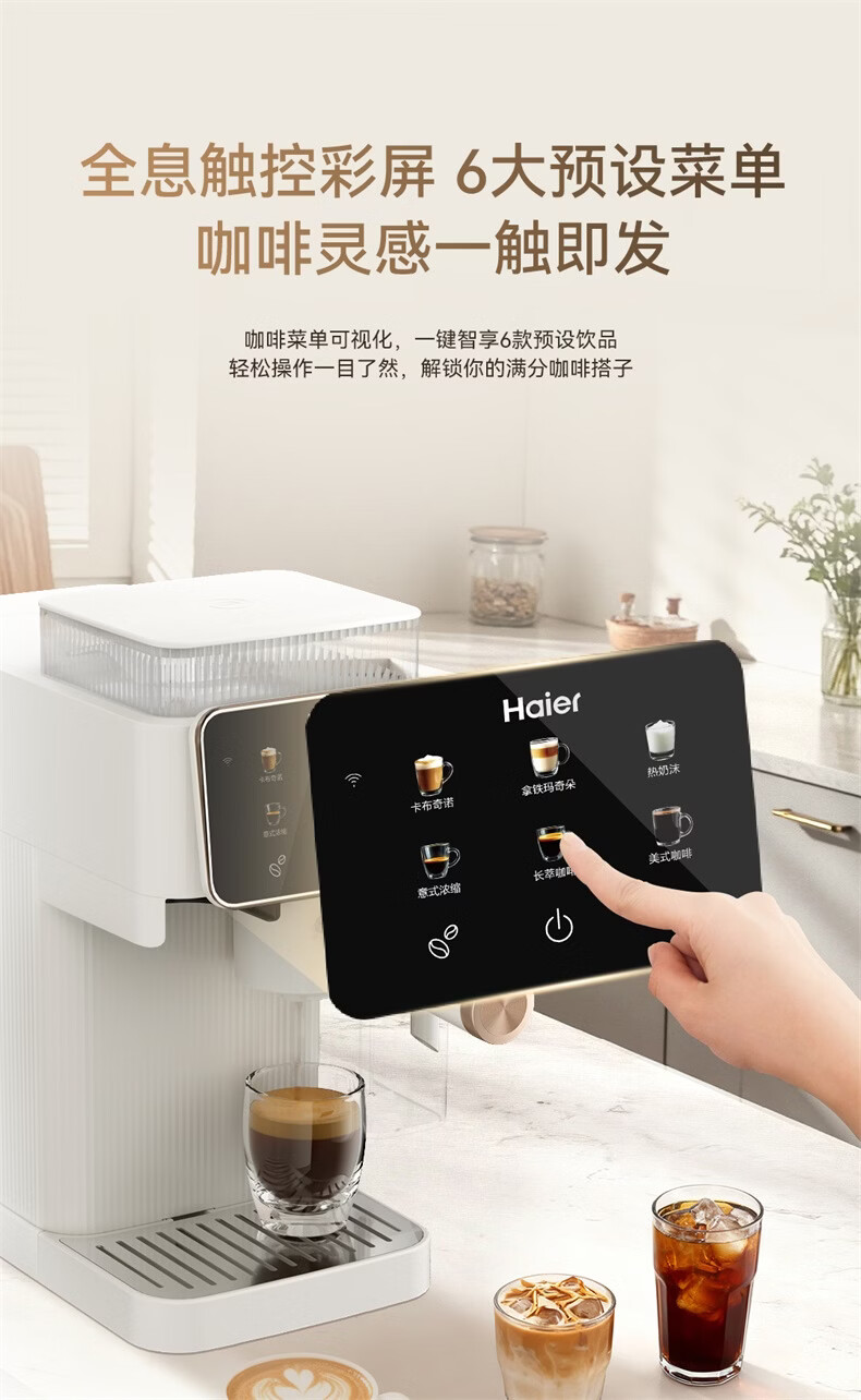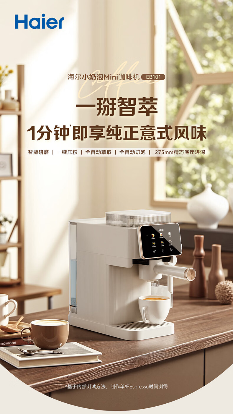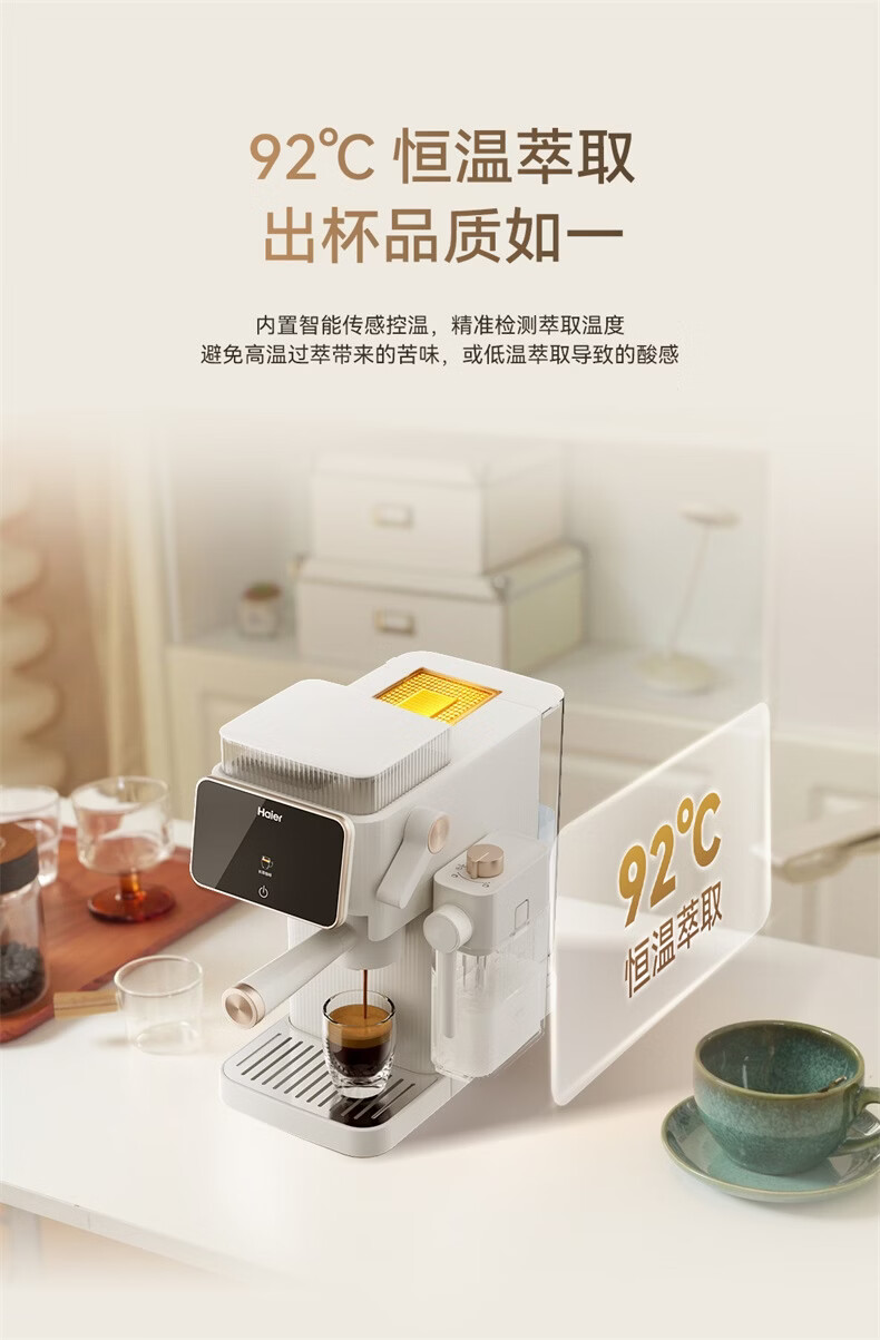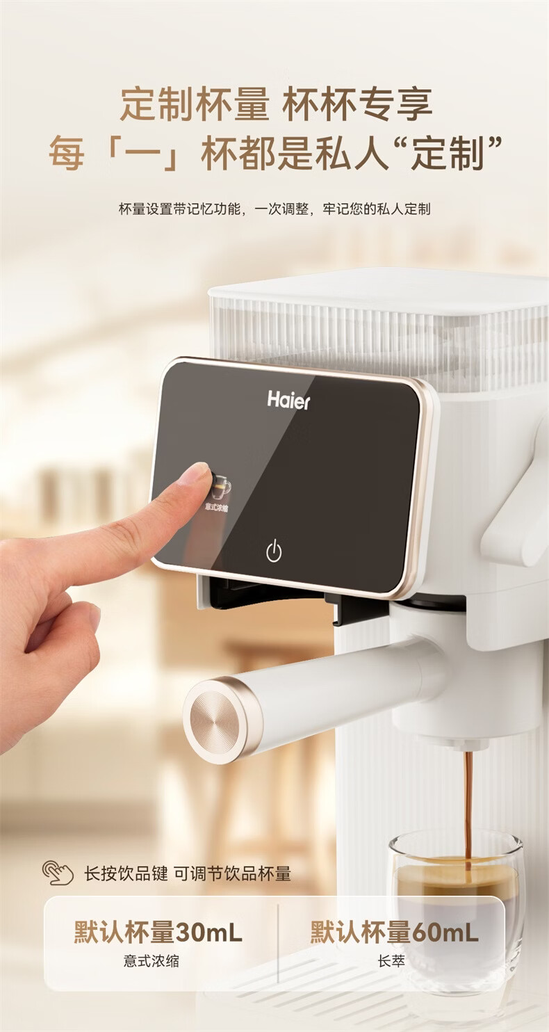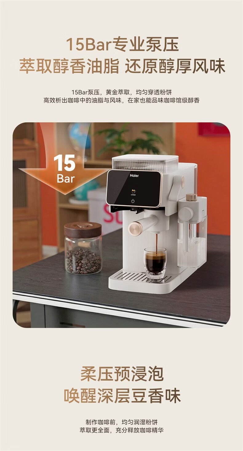 海尔(Haier)意式家用15Bar泵压智能研磨半自动咖啡机HSCF-EB101E(W)U1