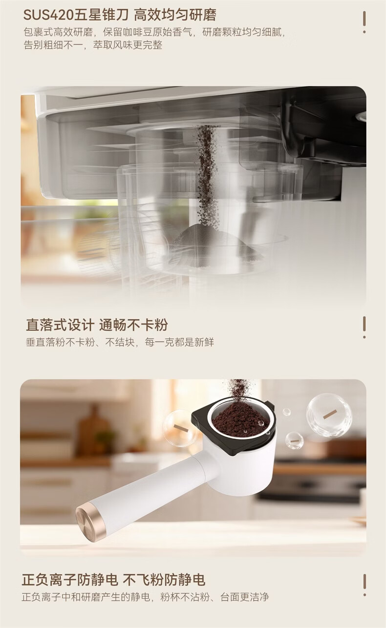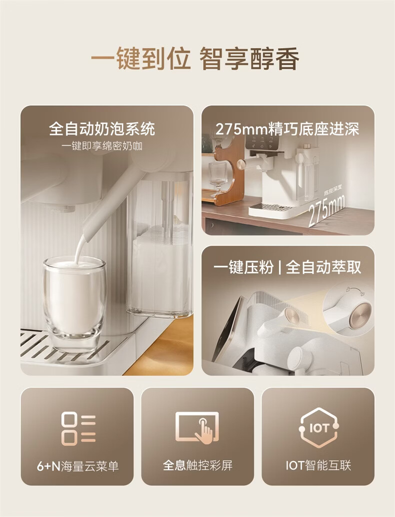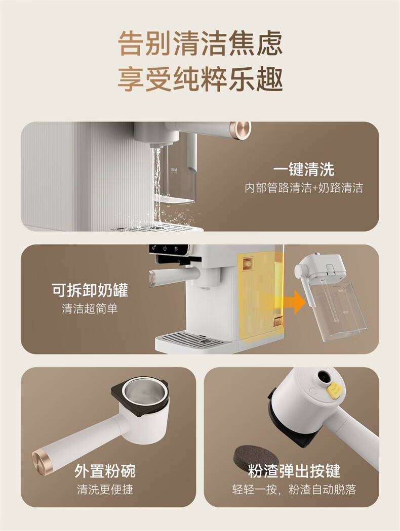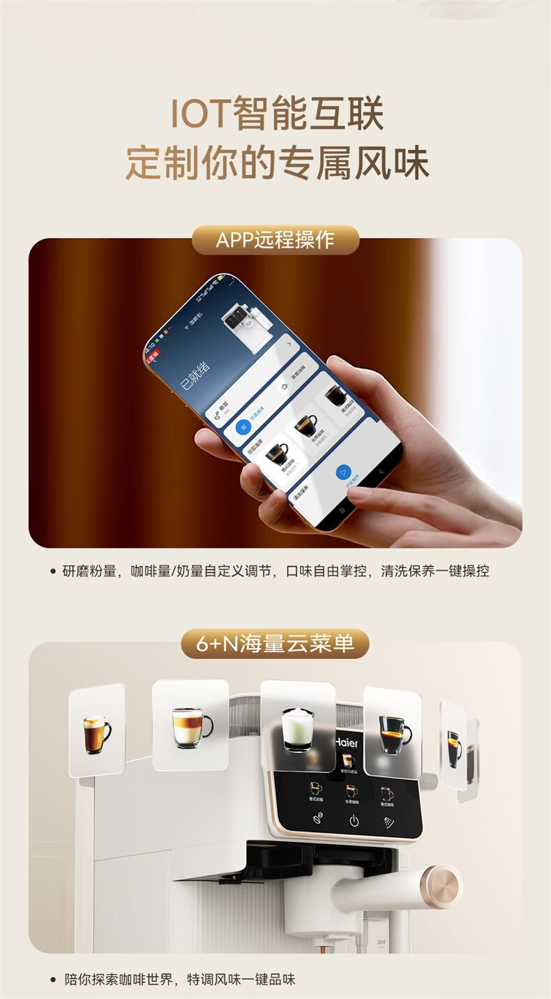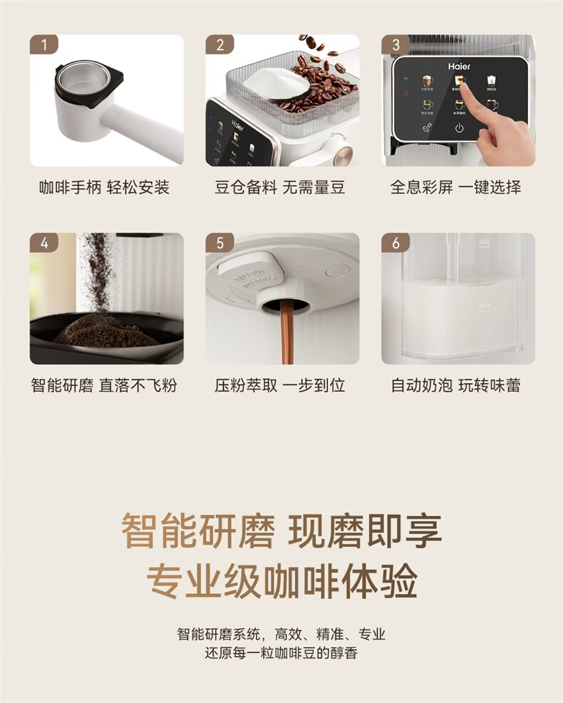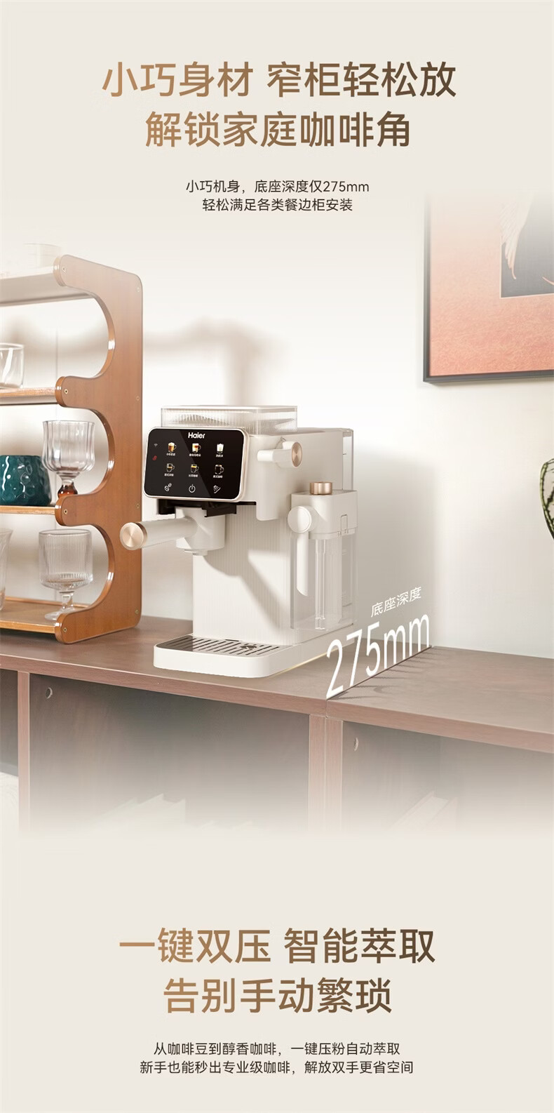 海尔(Haier)意式家用15Bar泵压智能研磨半自动咖啡机HSCF-EB101E(W)U1