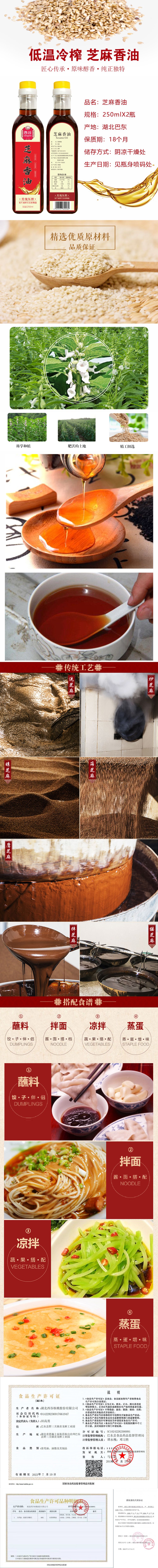 【恩施】DY西谷纯芝麻油传统压榨调味醇香香油250ml*2瓶