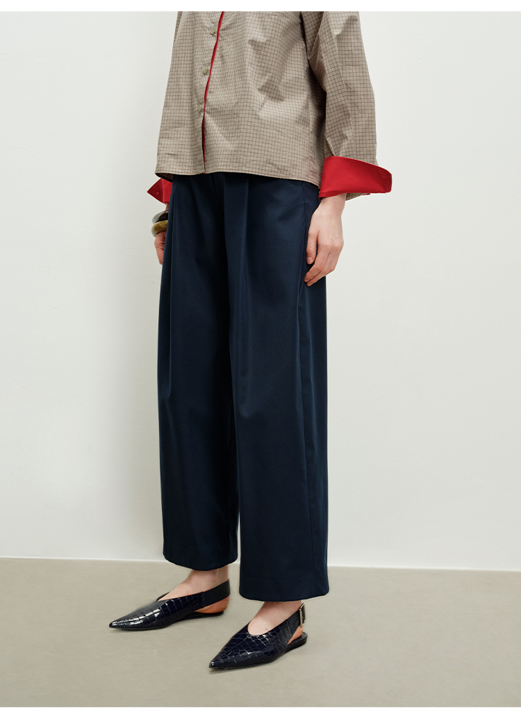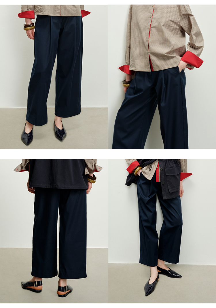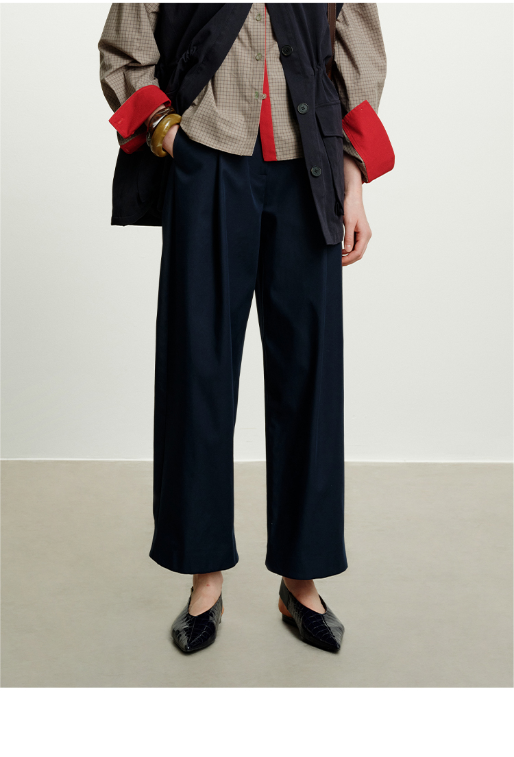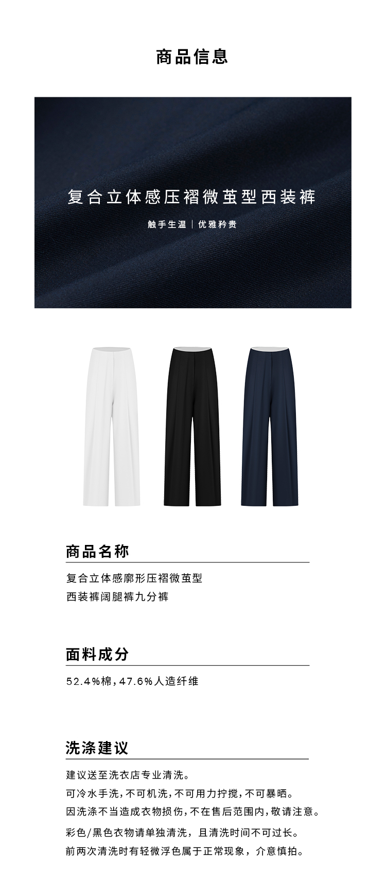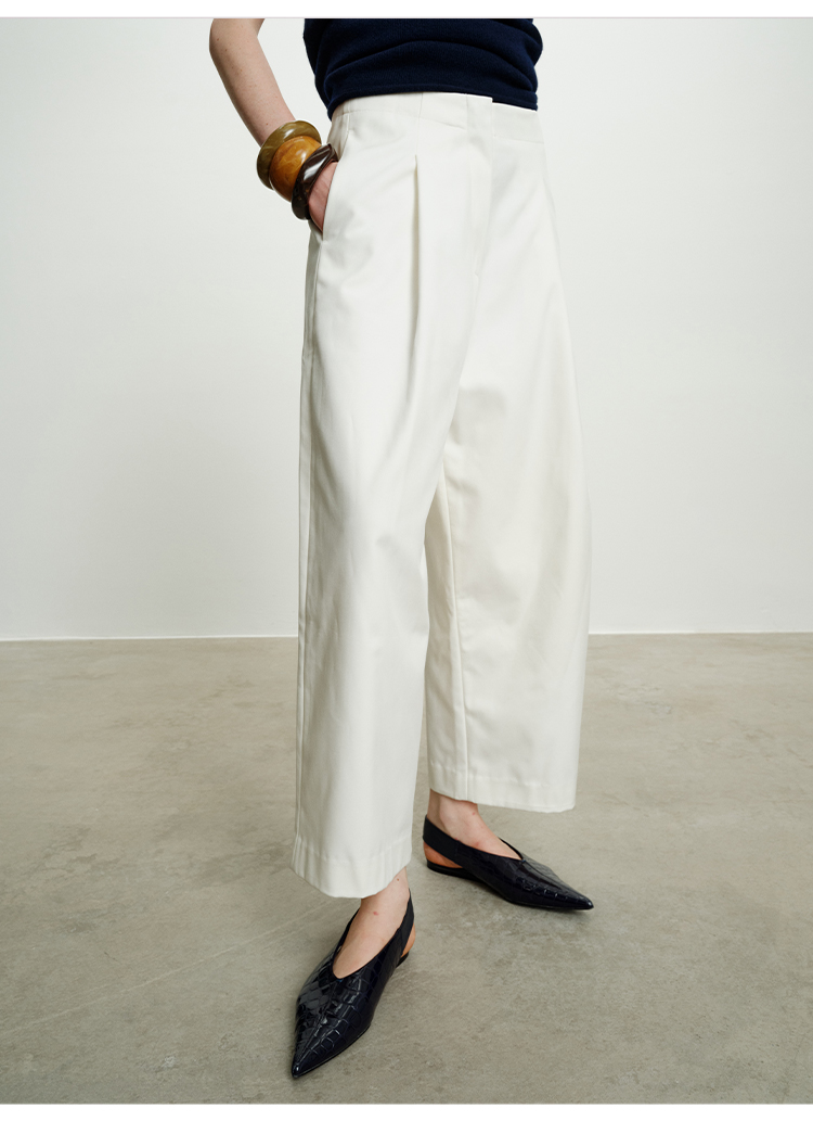HIDEMI复合立体感廓形压褶微茧型西装裤阔腿裤九分裤