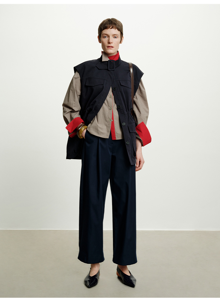 HIDEMI 简约廓形西装三件套西装/马夹/长裤 巧克力棕/黑色