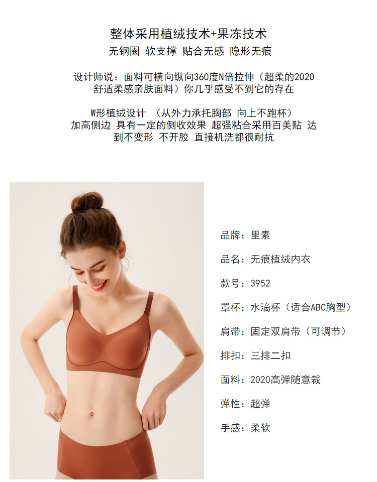 【大牌同款】【W型植绒无痕软支撑】轻薄无痕果冻内衣 超柔舒适裸感文胸