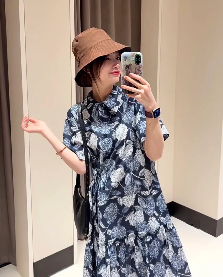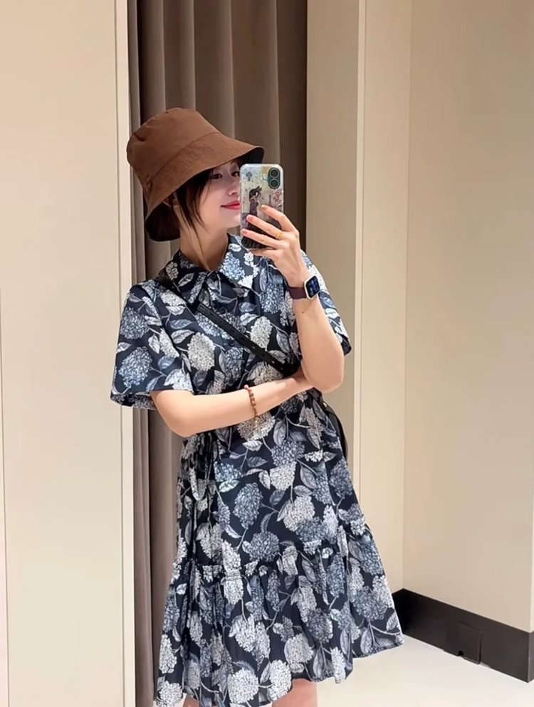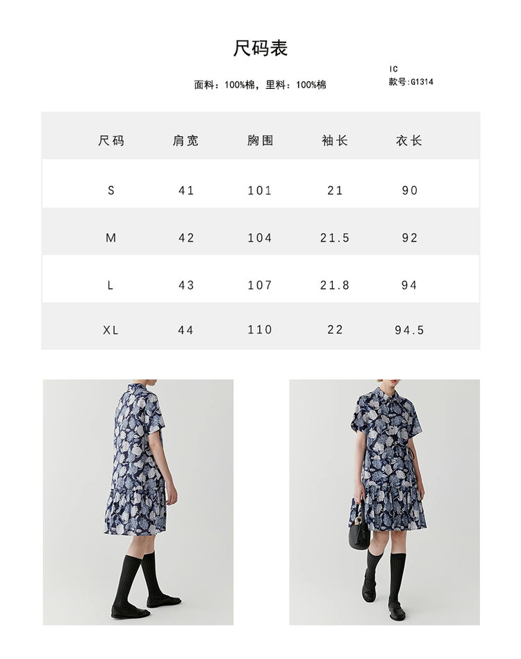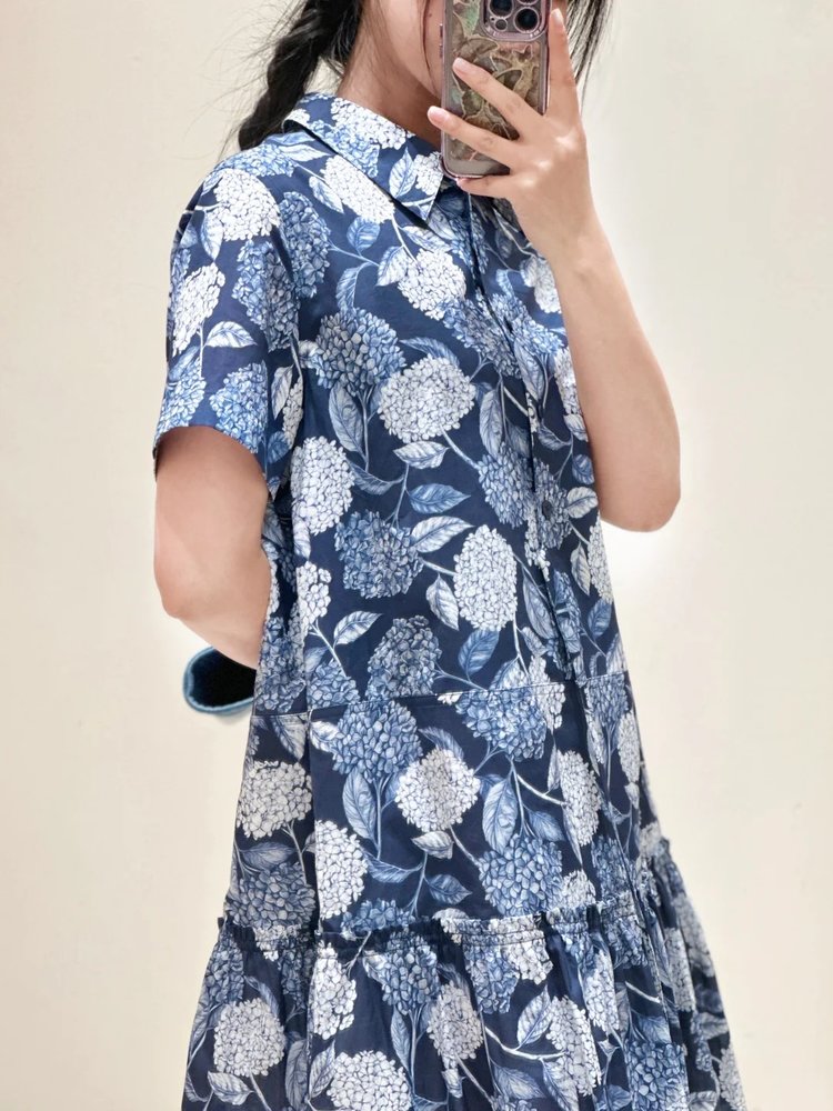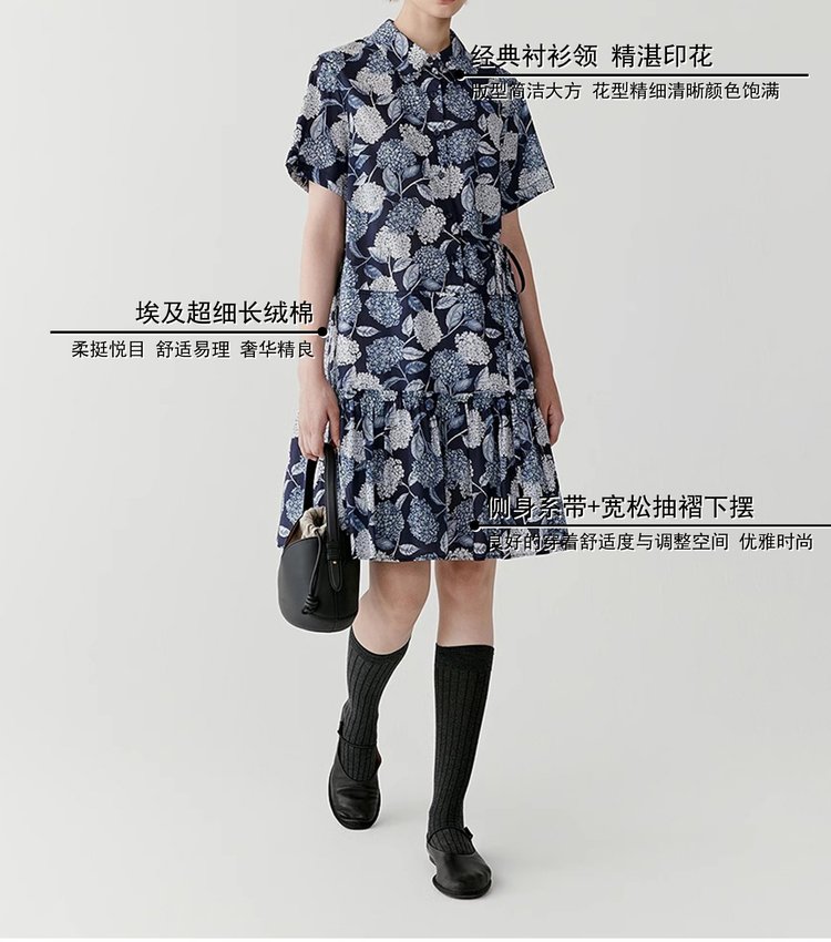 【高品质私服】【IC抗皱全棉印花布中长连衣裙】简约大方,展现出于练与优雅的气质G1314-CC【无标出货 介意慎拍】