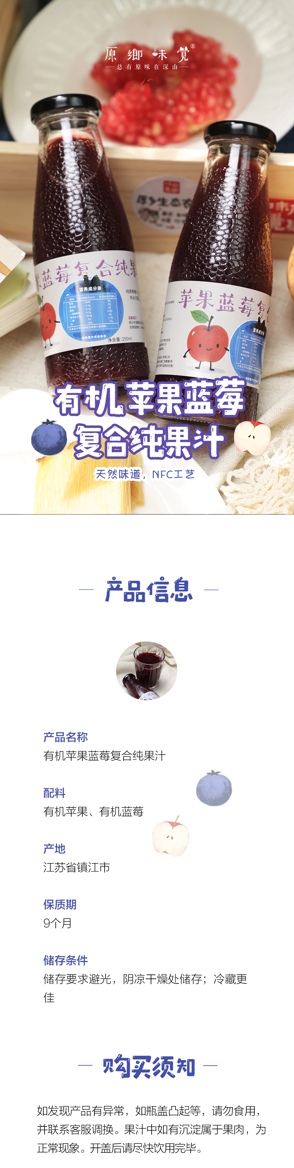 有机苹果蓝莓复合纯果汁(基地直发-京东包邮)|6*250ml/箱,来自江苏镇江,生产者:周永平【合作生产,公平贸易】